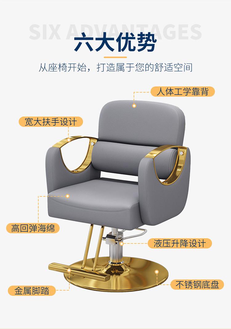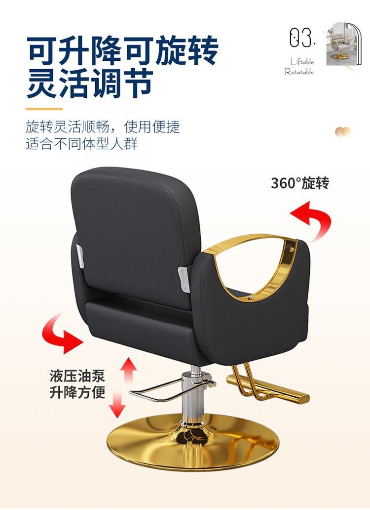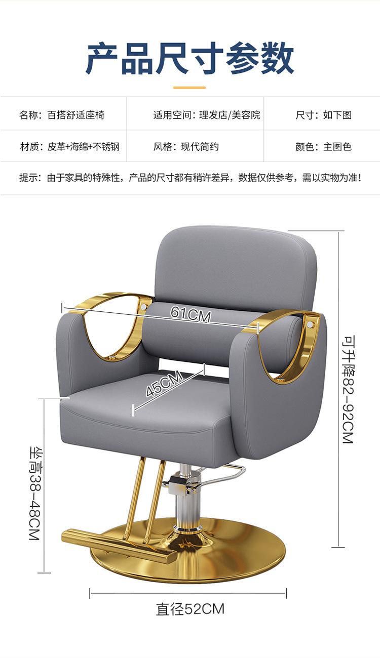 Cadeira de barbeiro comemorativa da Internet, cadeira de cabeleireiro, salão de cabeleireiro, especial, apoio de braço de aço inoxidável, elevação e rotação, cadeira de corte de cabelo com folha de elevação