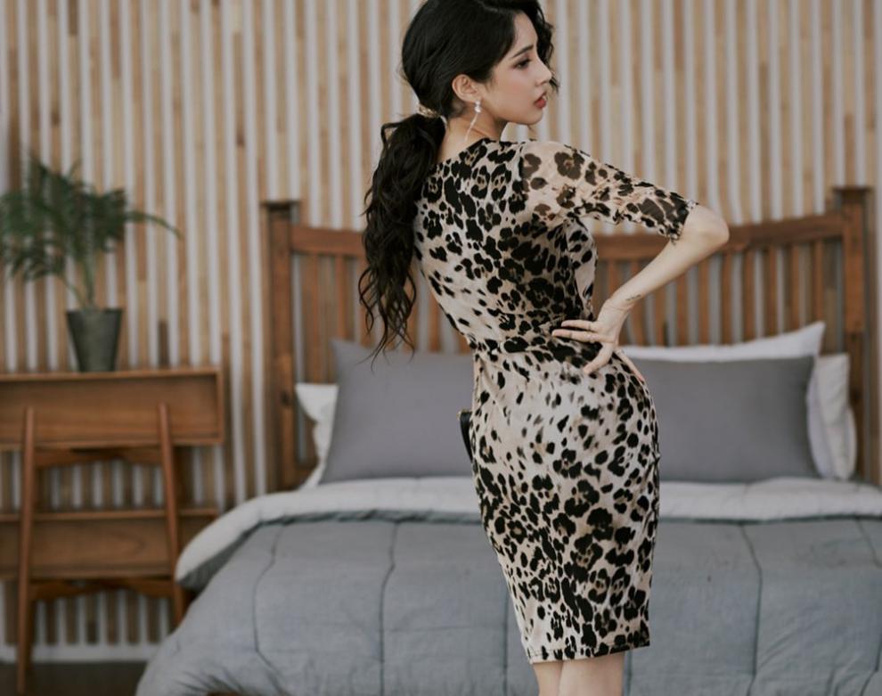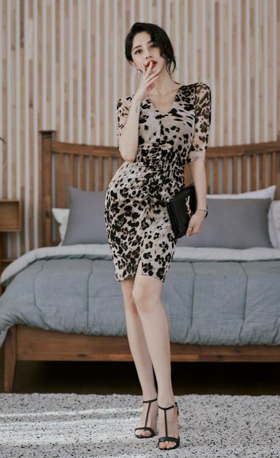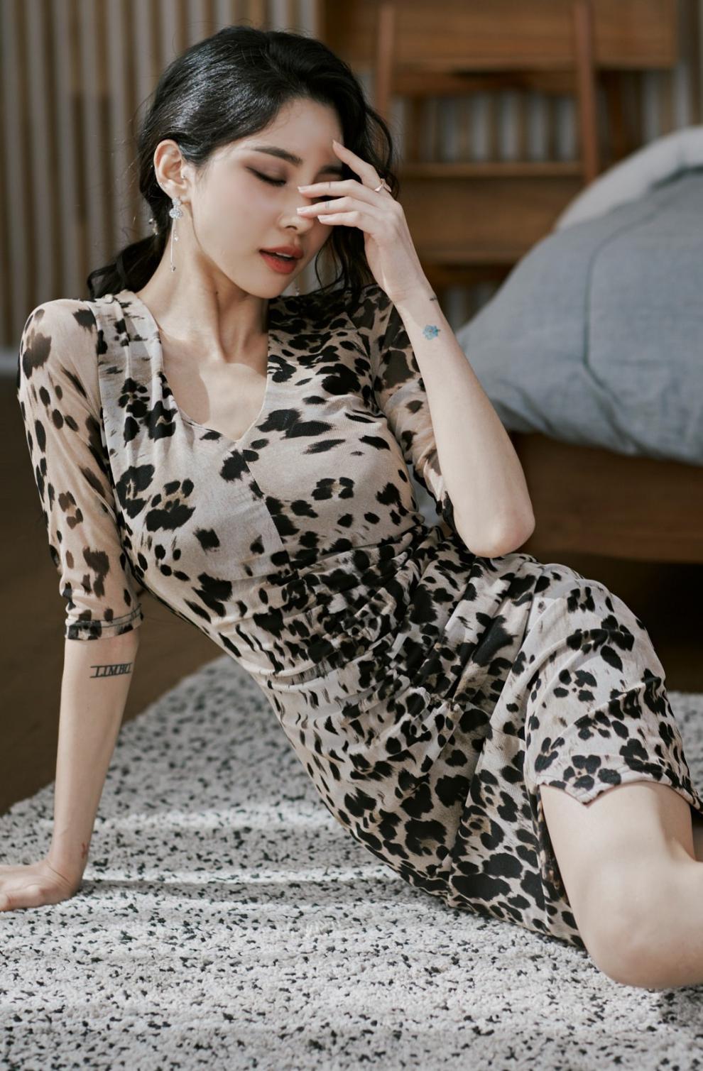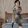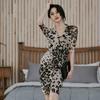Vestido Francês Sexy Nicho Estampado com Casaco Decote V Saia Quadril Transfronteiriço Feminino Outono Novo Vestido de Moda