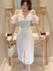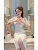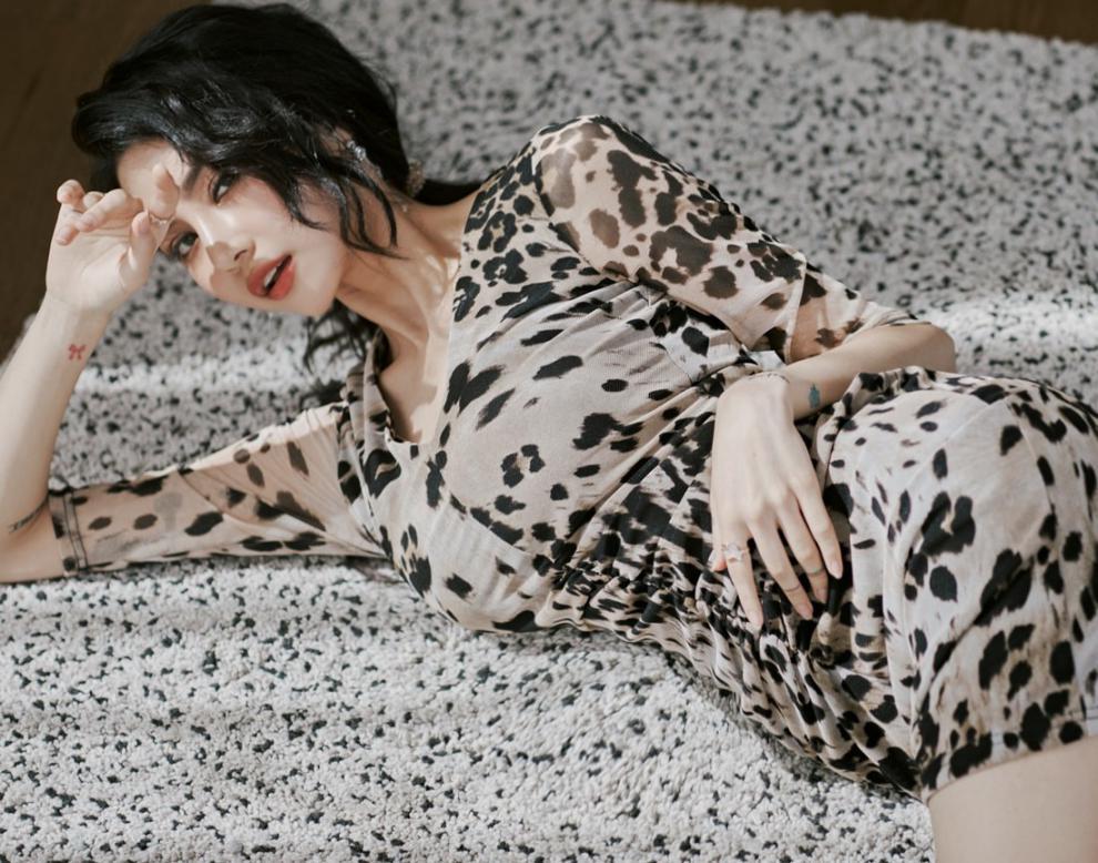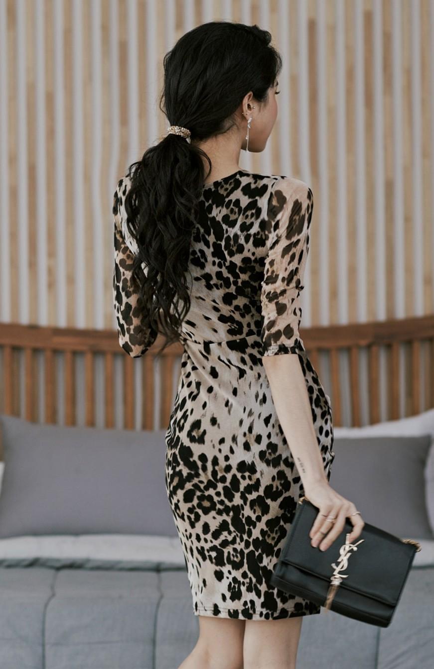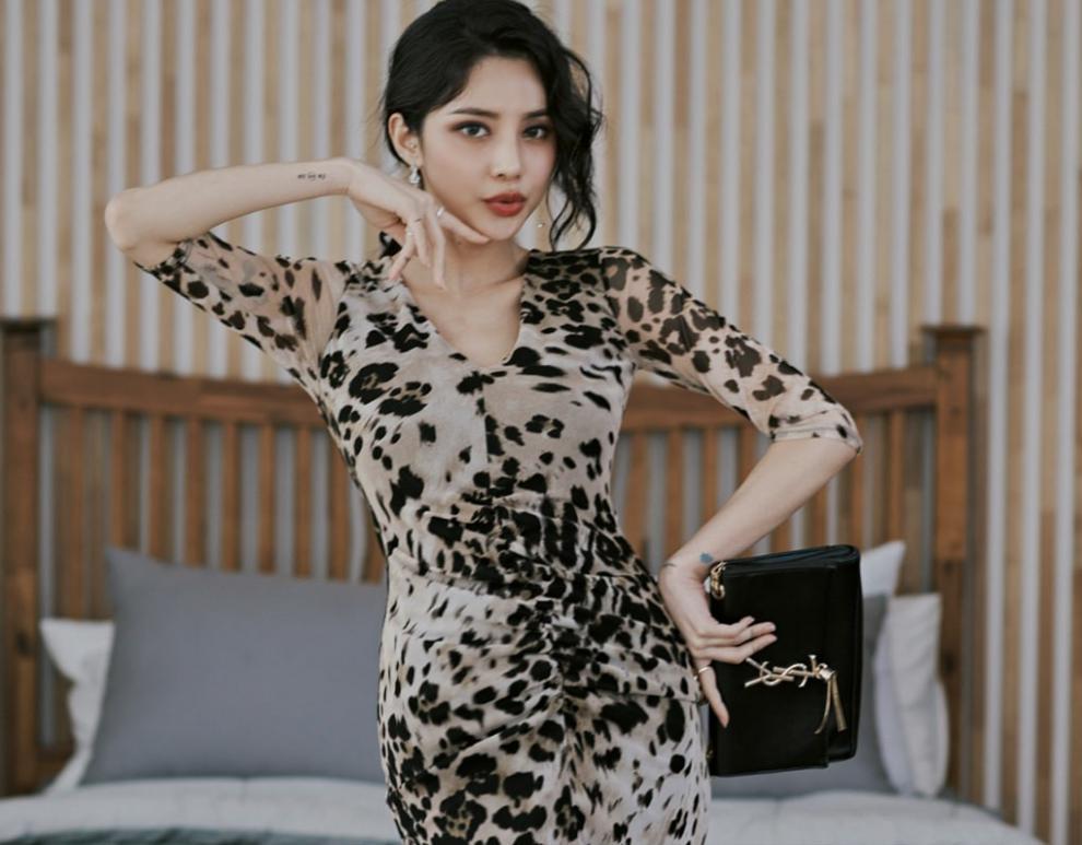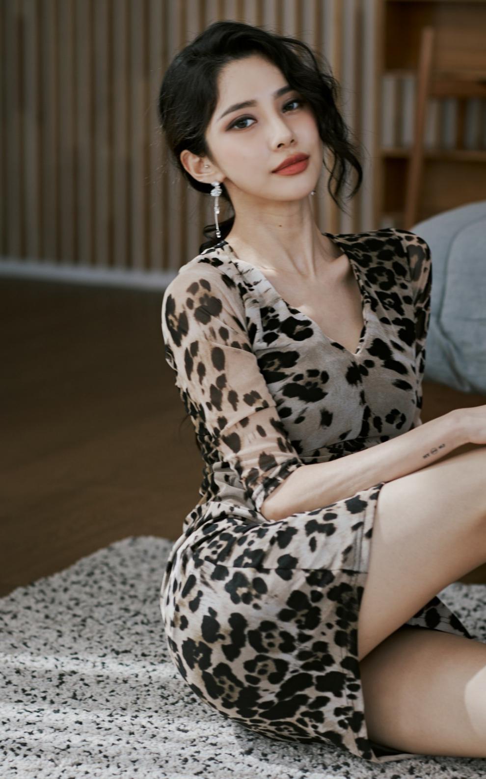 Vestido Francês Sexy Nicho Estampado com Casaco Decote V Saia Quadril Transfronteiriço Feminino Outono Novo Vestido de Moda