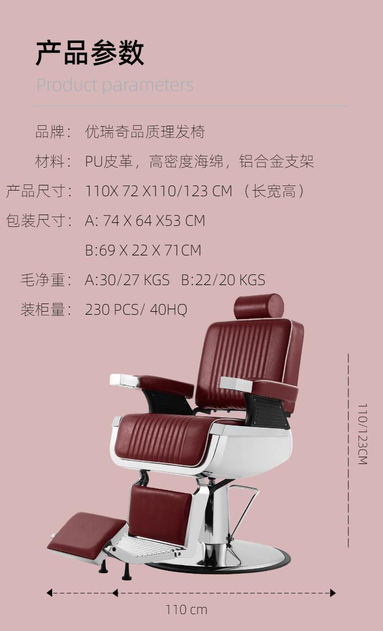 Cadeira de Barbeiro, Cadeira de Cabeleireiro, Cadeira de Barbearia, Cadeira de Barbear Masculina, Cadeira de Estética com Elevação Hidráulica, Cadeira de Liga de Alumínio para Serviço Pesado