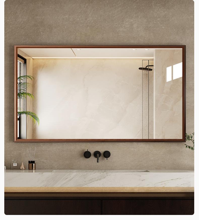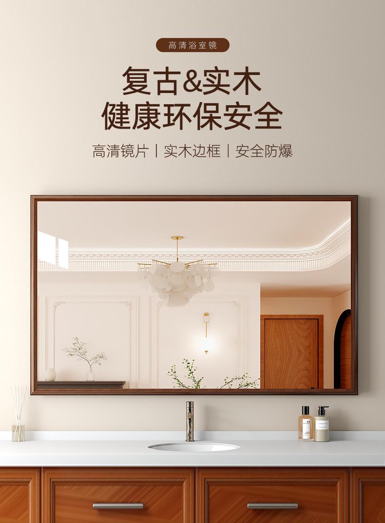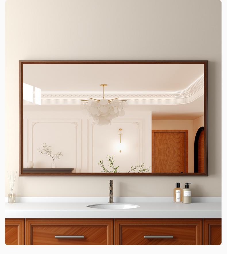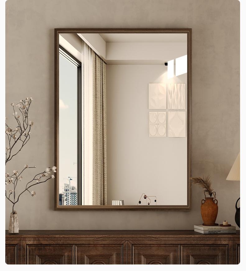Espelho de madeira maciça para banheiro doméstico, espelho de parede para banheiro, francês, retrô, vertical, médio, antigo, espelho de maquiagem