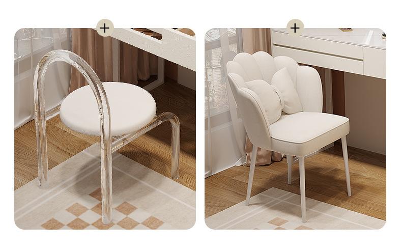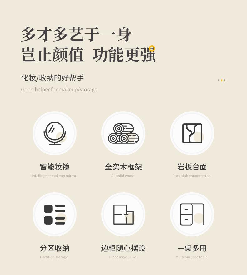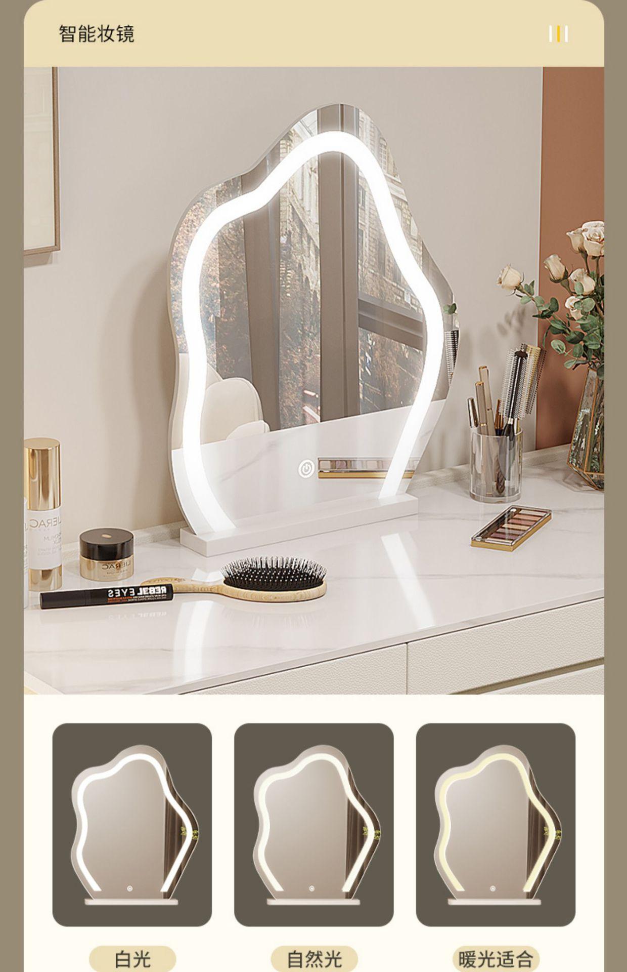 White 80 table + cabinet + smart cloud mirror + round stool, White 80 table + cabinet + smart cloud mirror + p...