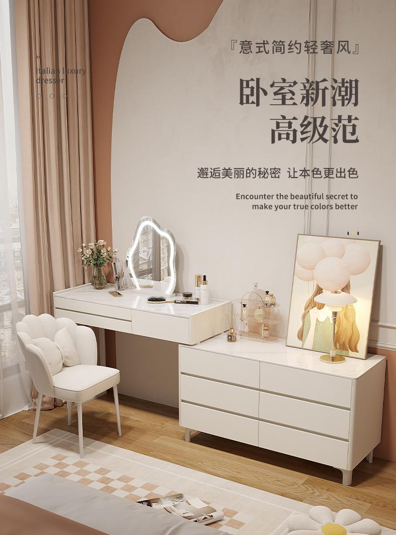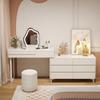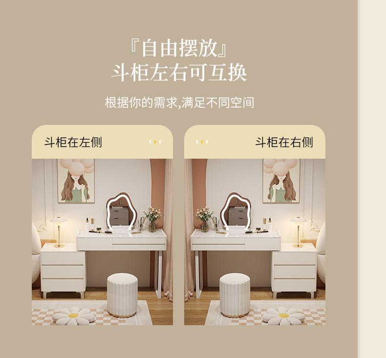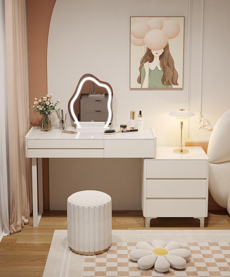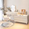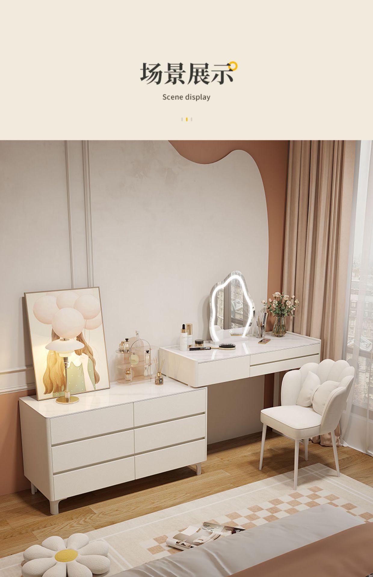 Penteadeira de madeira maciça estilo creme moderna e simples, armário de canto para quarto, penteadeira, mesa de maquiagem integrada