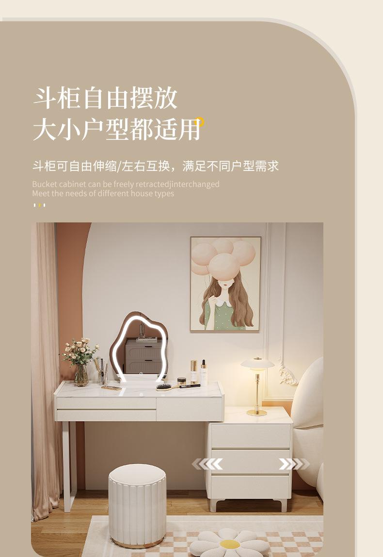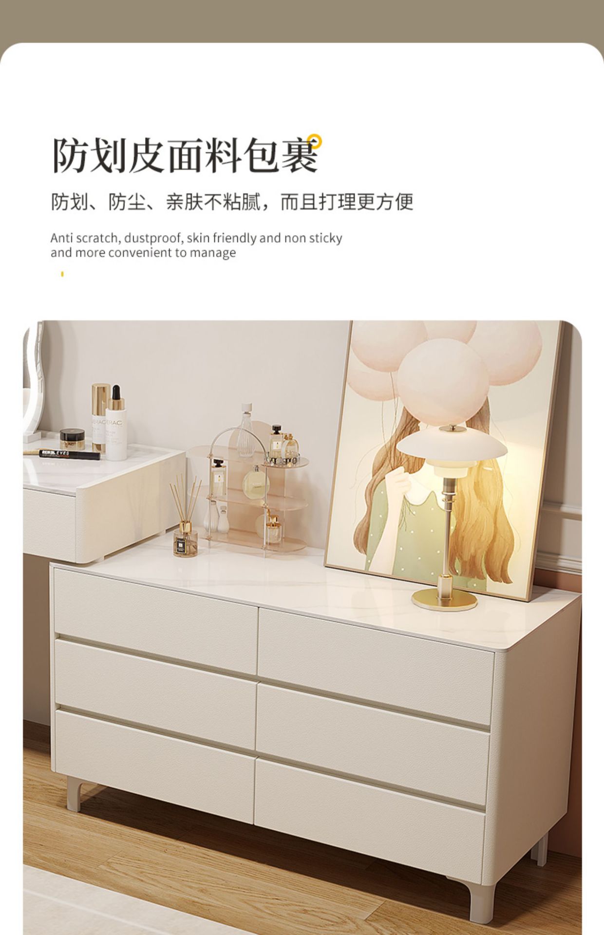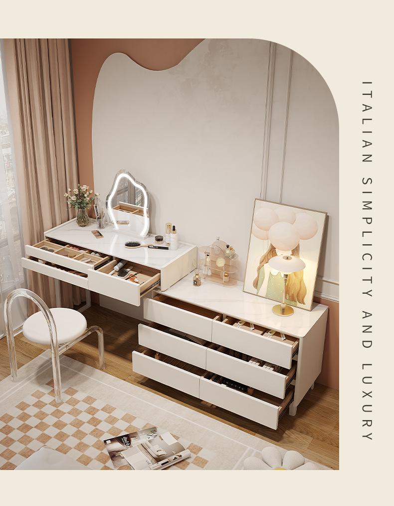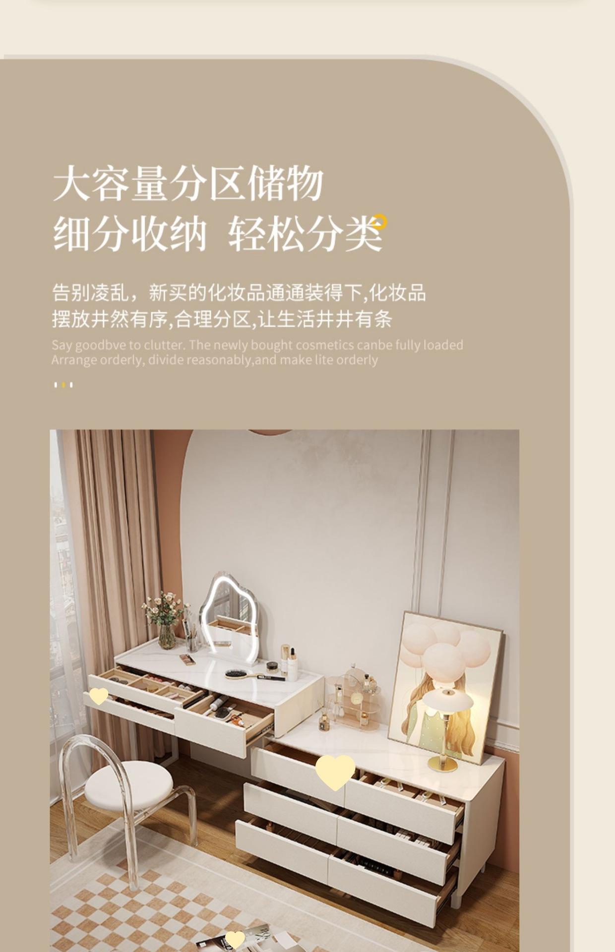 Penteadeira de madeira maciça estilo creme moderna e simples, armário de canto para quarto, penteadeira, mesa de maquiagem integrada