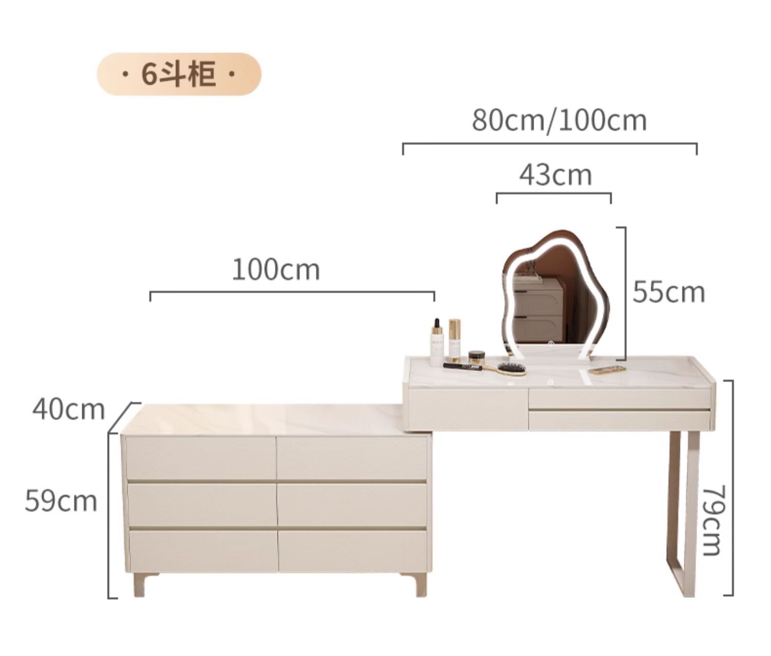 White 80 table + cabinet + smart cloud mirror (without stool) 6 chest of drawers 100cm (all solid wood - slate countertop) - self-installation