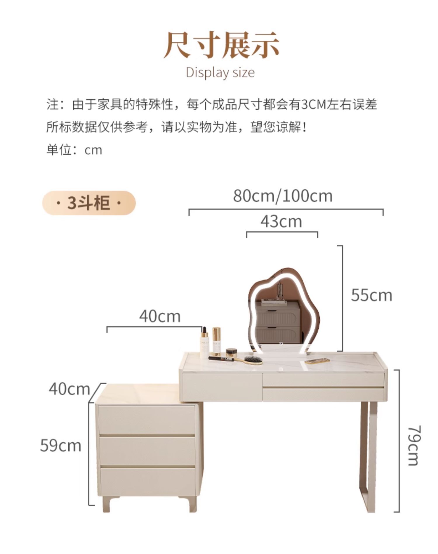 White 80 table + cabinet + smart cloud mirror + acrylic chair 3 chest of drawers 40cm (all solid wood - slate countertop) - self-installation