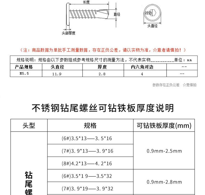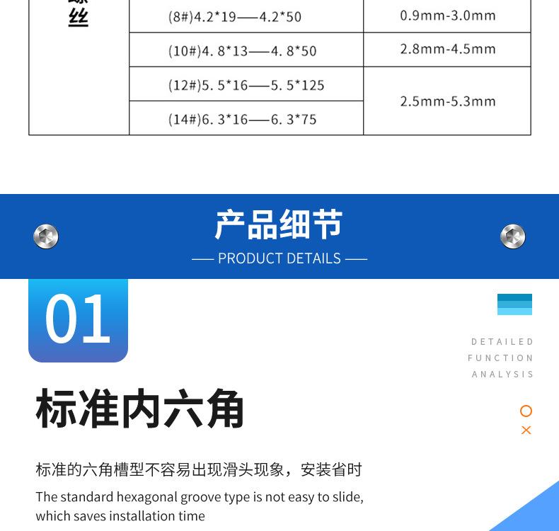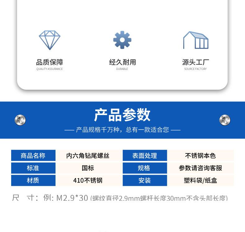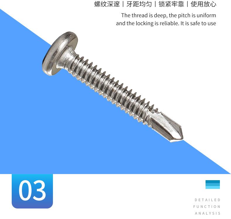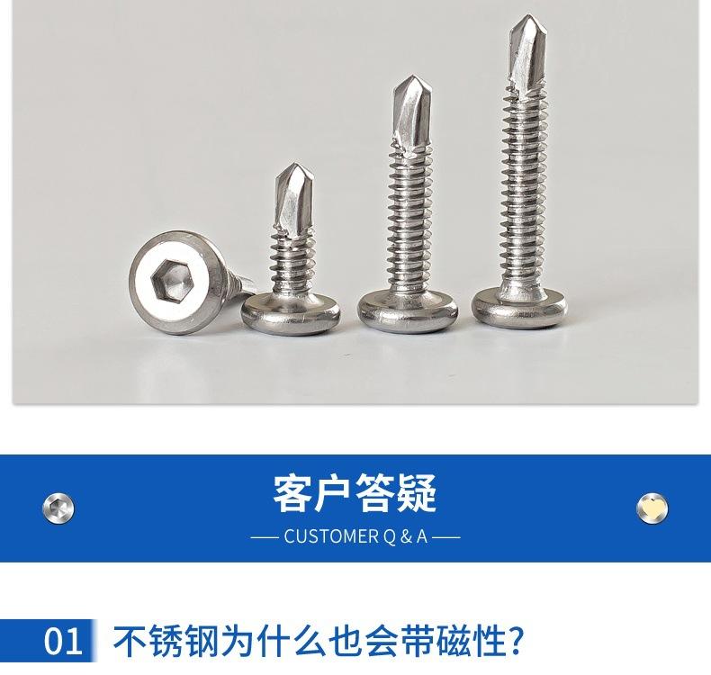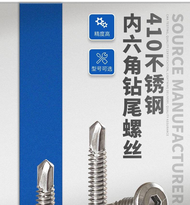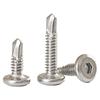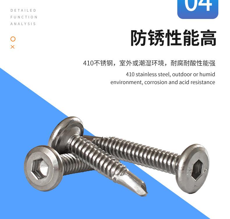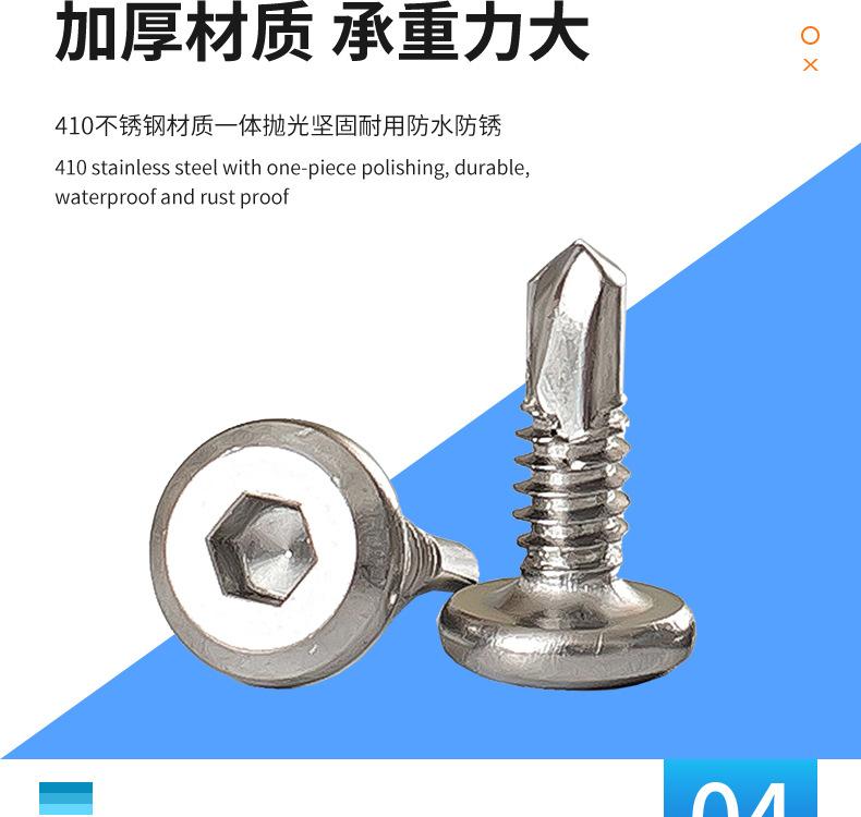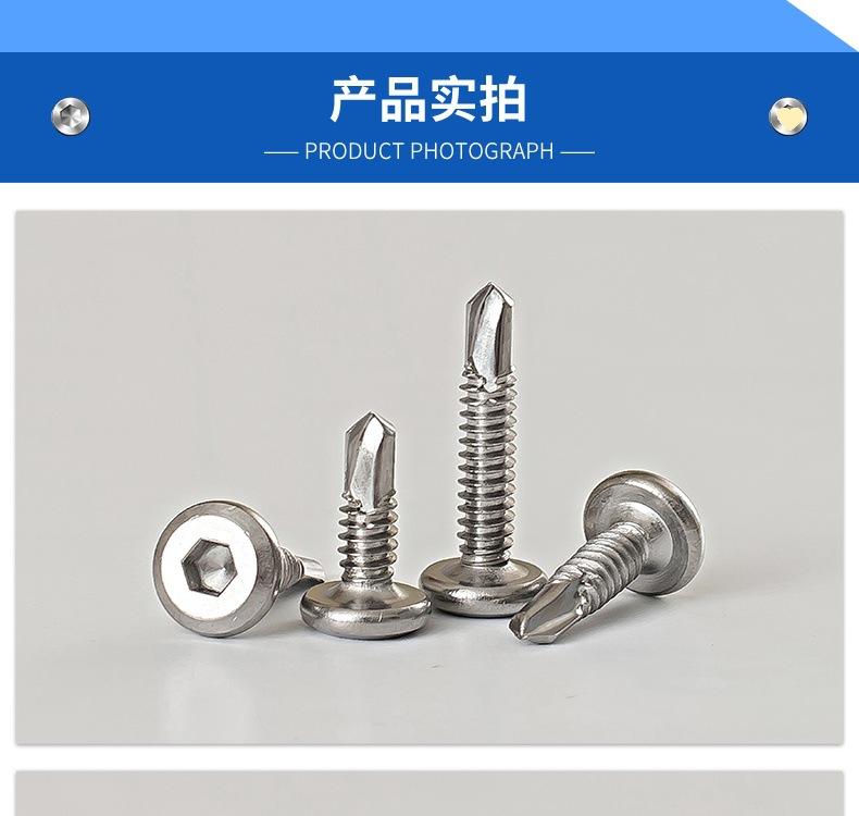 Parafuso de cauda de broca sextavada de aço inoxidável 410, cabeça redonda, parafuso autoperfurante, cabeça grande e plana, fio de cauda de andorinha, cabeça escareada, cor de telha de aço