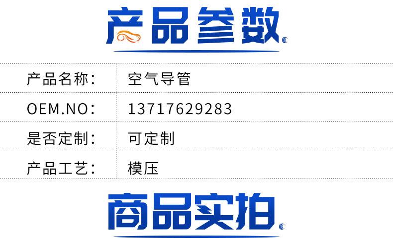 Aplicável ao tubo de admissão de duto de ar BMW X5X6 F15F16 tubo de admissão de ar de plástico OE 13717629283