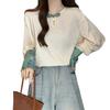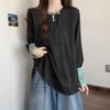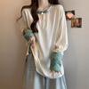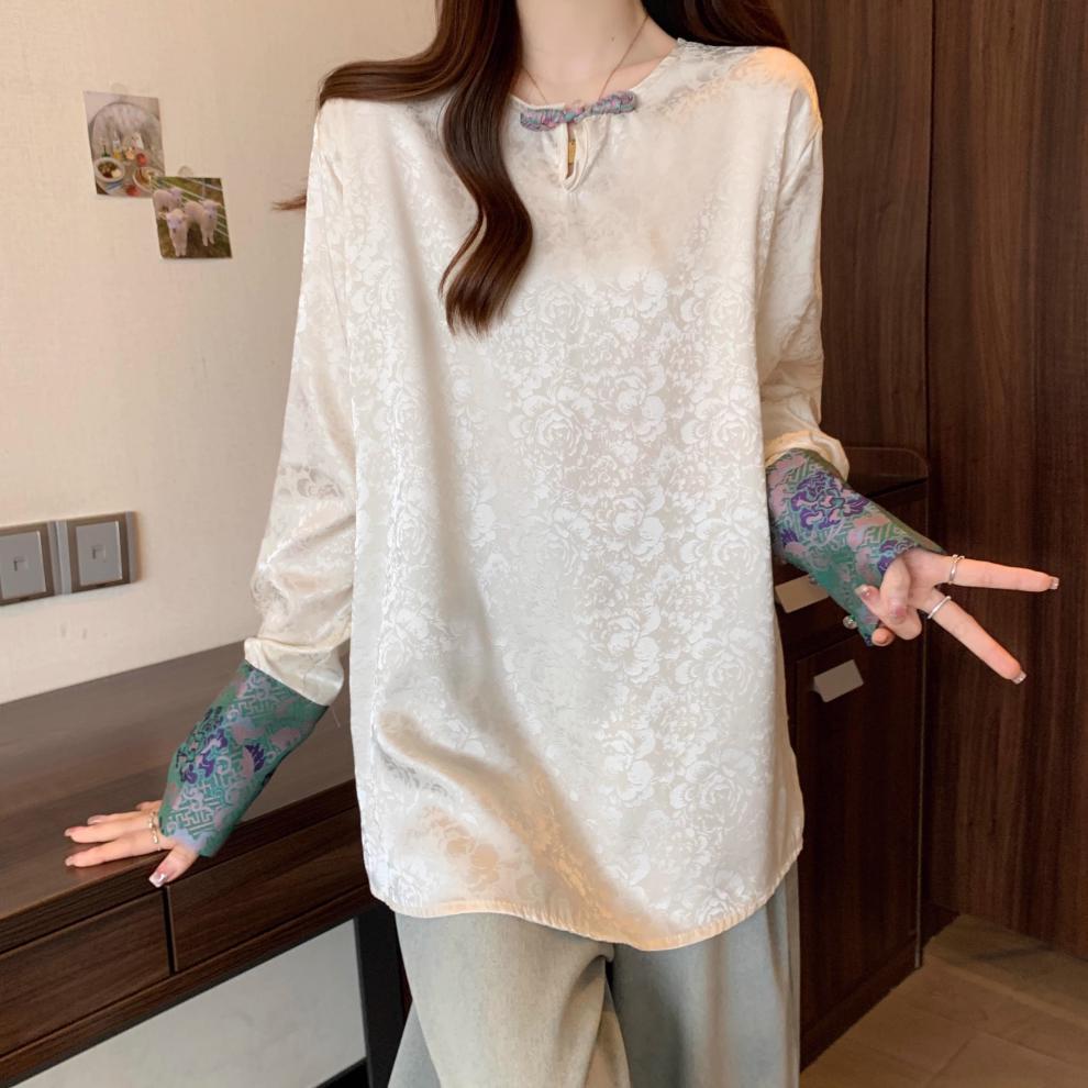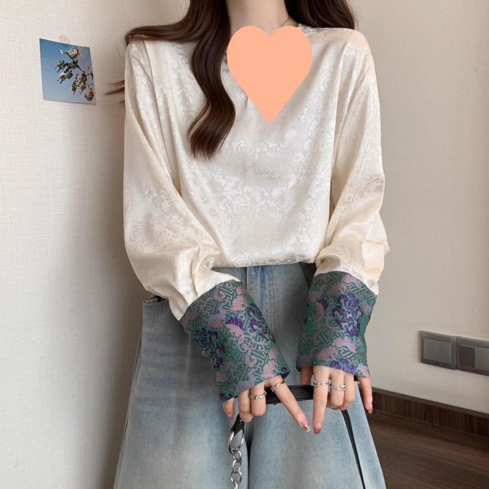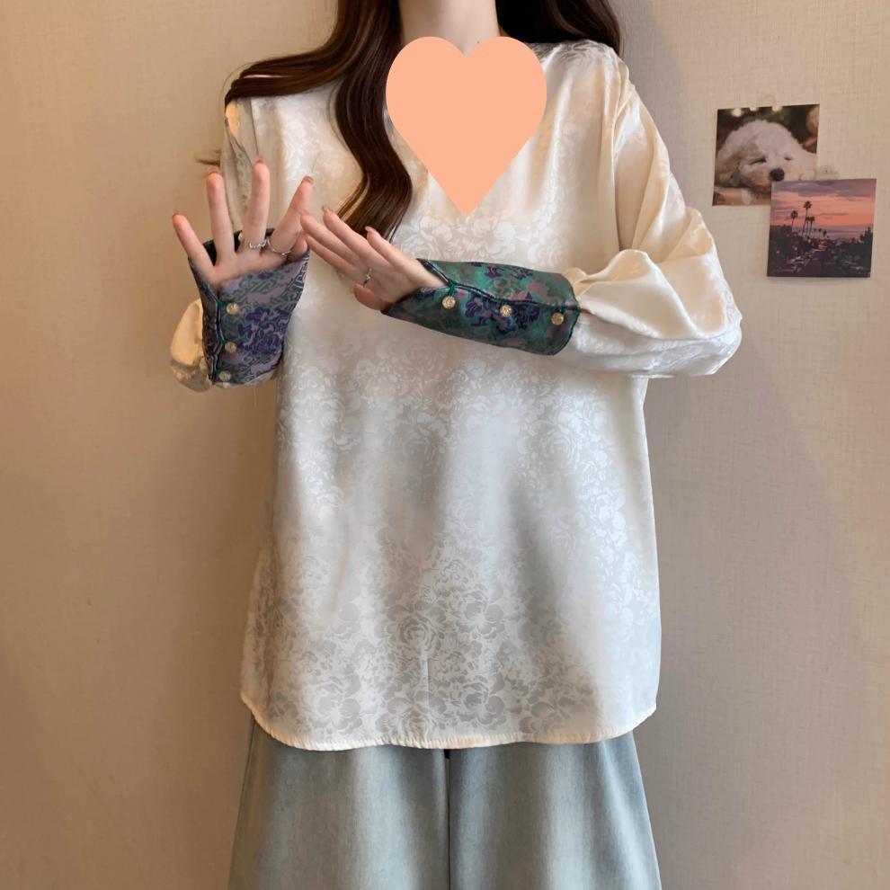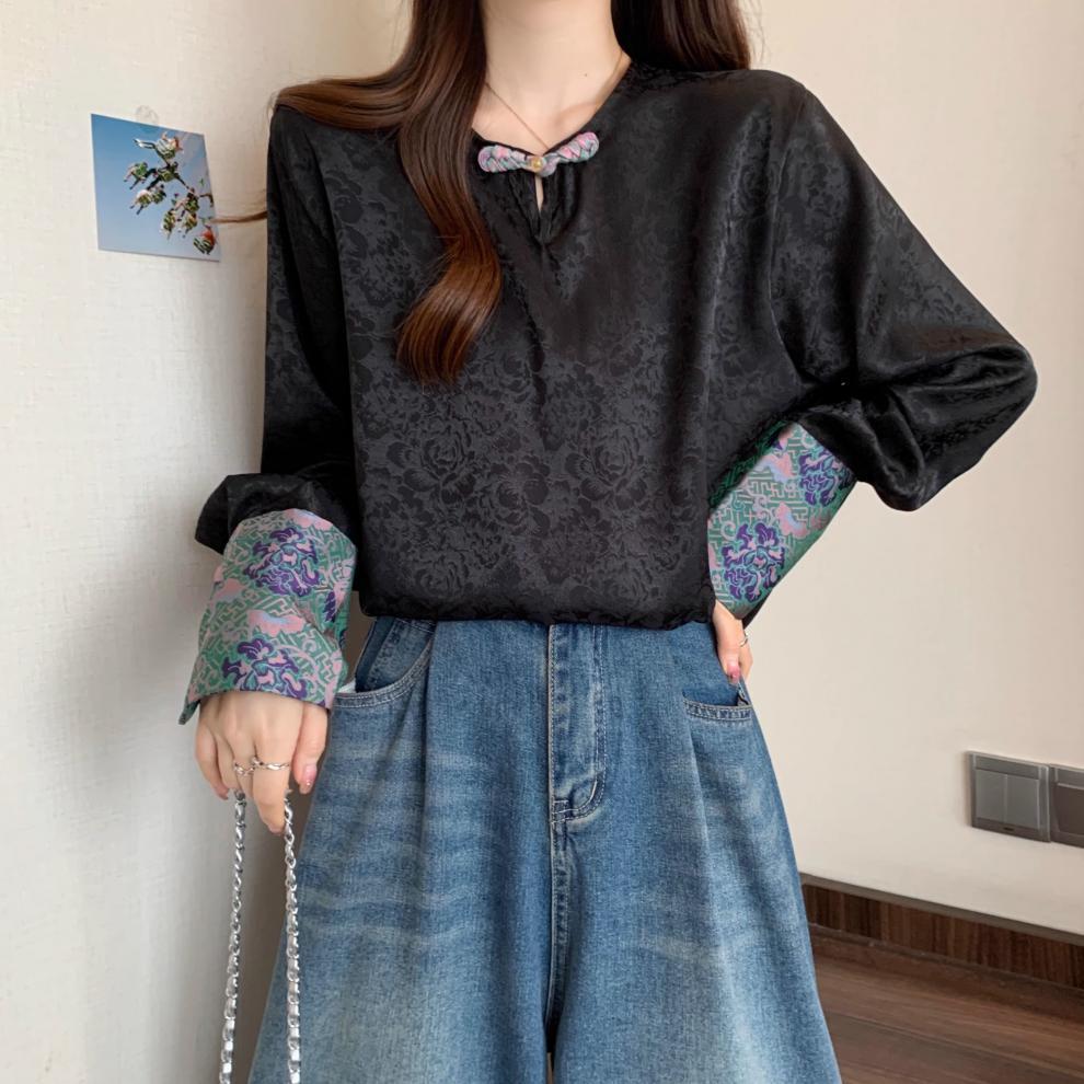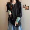 [Original] Camisa de Manga Comprida Estilo Nacional Estilo Chinês Novo com Botão de Disco para Mulheres 2025 Outono Look Solto Emagrecedor Top de Cor Contrastante