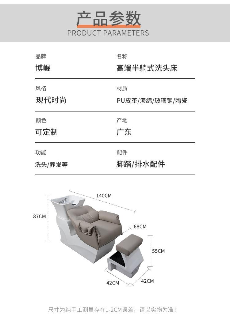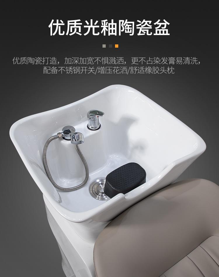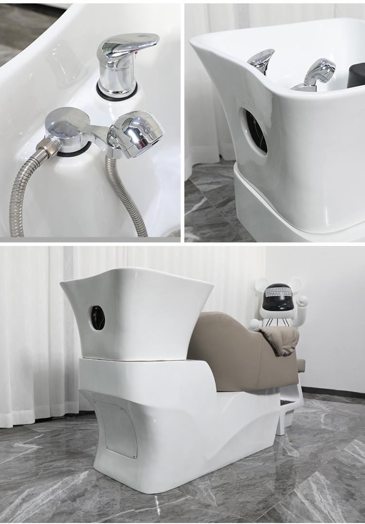 Cama de xampu para cabeleireiro, cama de descarga, bacia de cerâmica, aço inoxidável, cama de xampu para salão de beleza, barbearia, salão de beleza, vendas diretas da fábrica