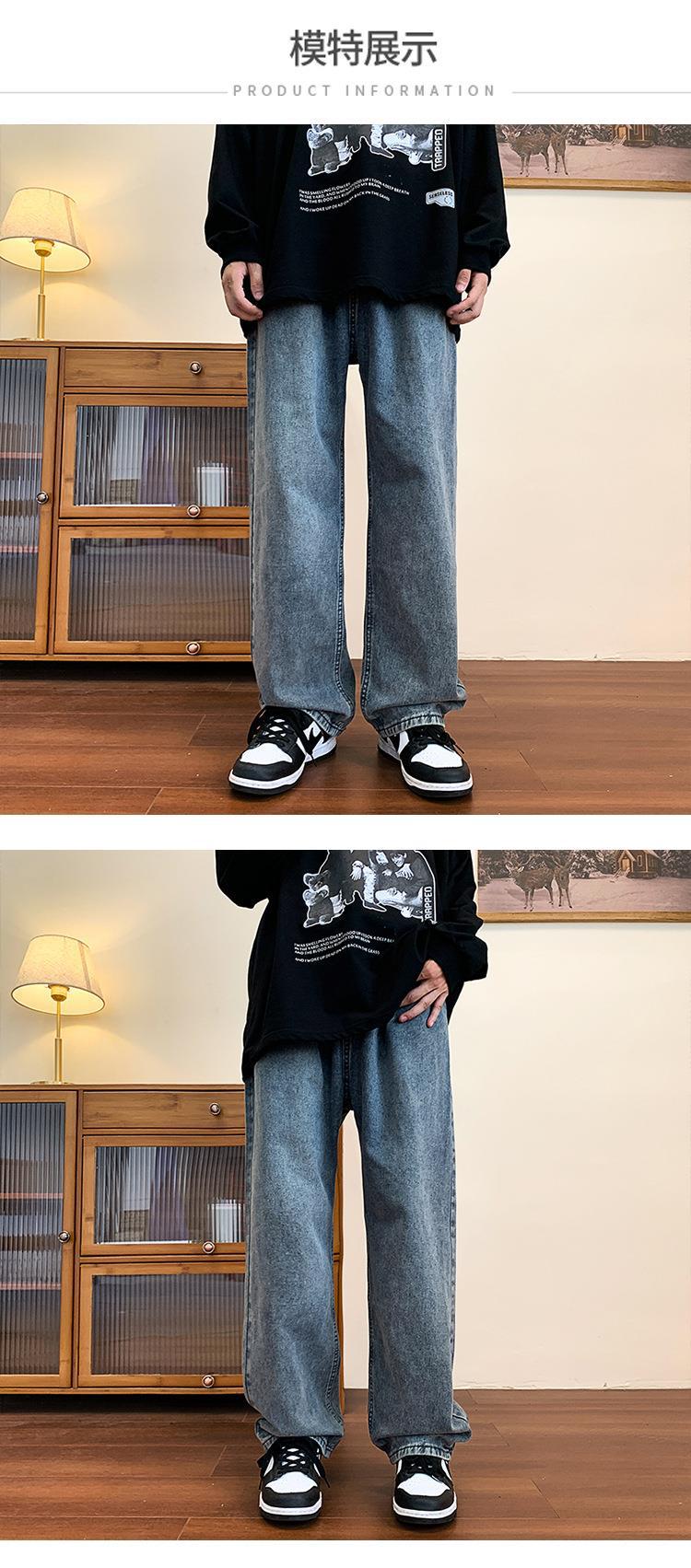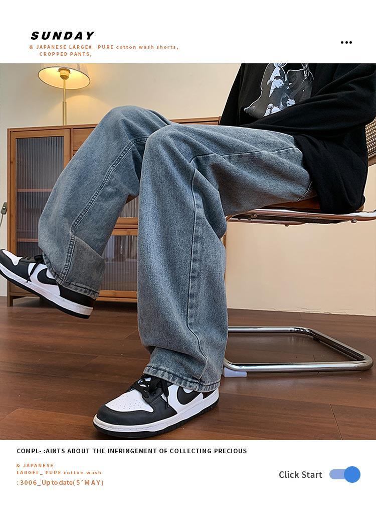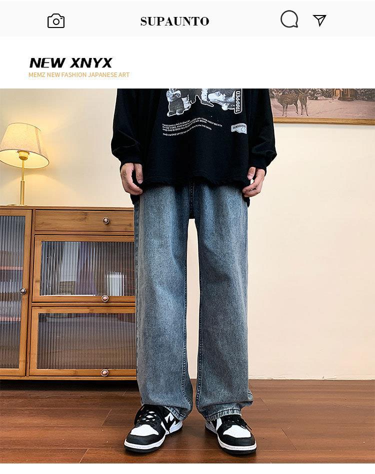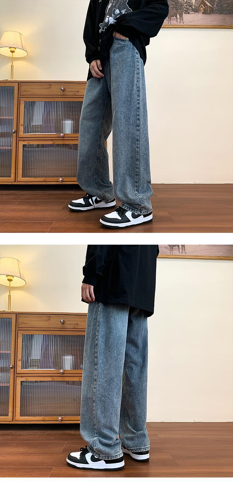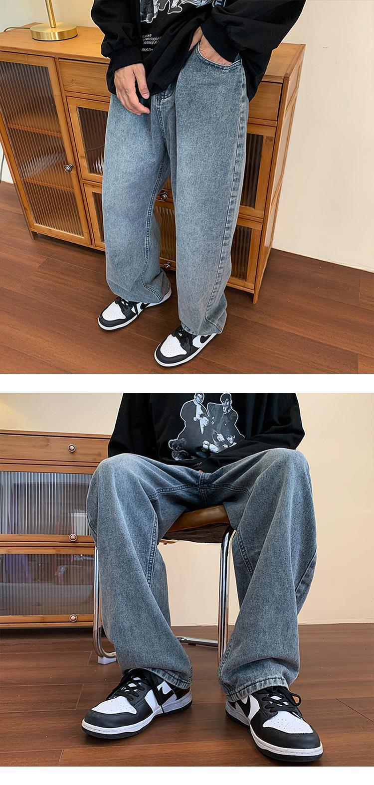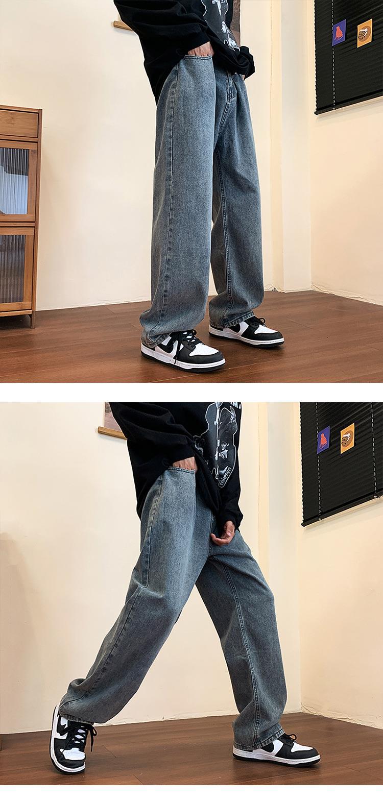 Compre Calça jeans masculina solta e reta de primavera e outono, estilo coreano Harajuku, marca de moda retrô, calças largas para todos os tipos de combinações no atacado no Joom.pro