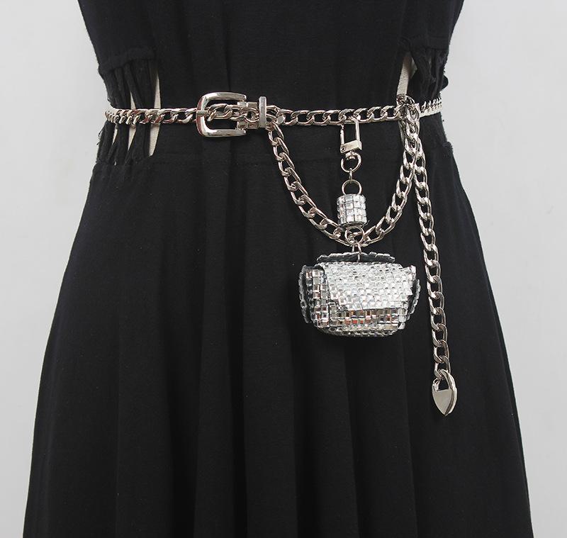 Bolsa de cinto de corrente mini bolsa de cintura de strass decoração de cintura feminina com saia de terno cintura justa ins corrente de cintura de verão na moda