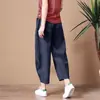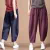 95 Algodão Calças Femininas Verão Nove Pontos Solto Fino Imitação de Algodão e Linho Cintura Solta Calças de Perna Larga Vintage Artístico All-match Calças Casuais