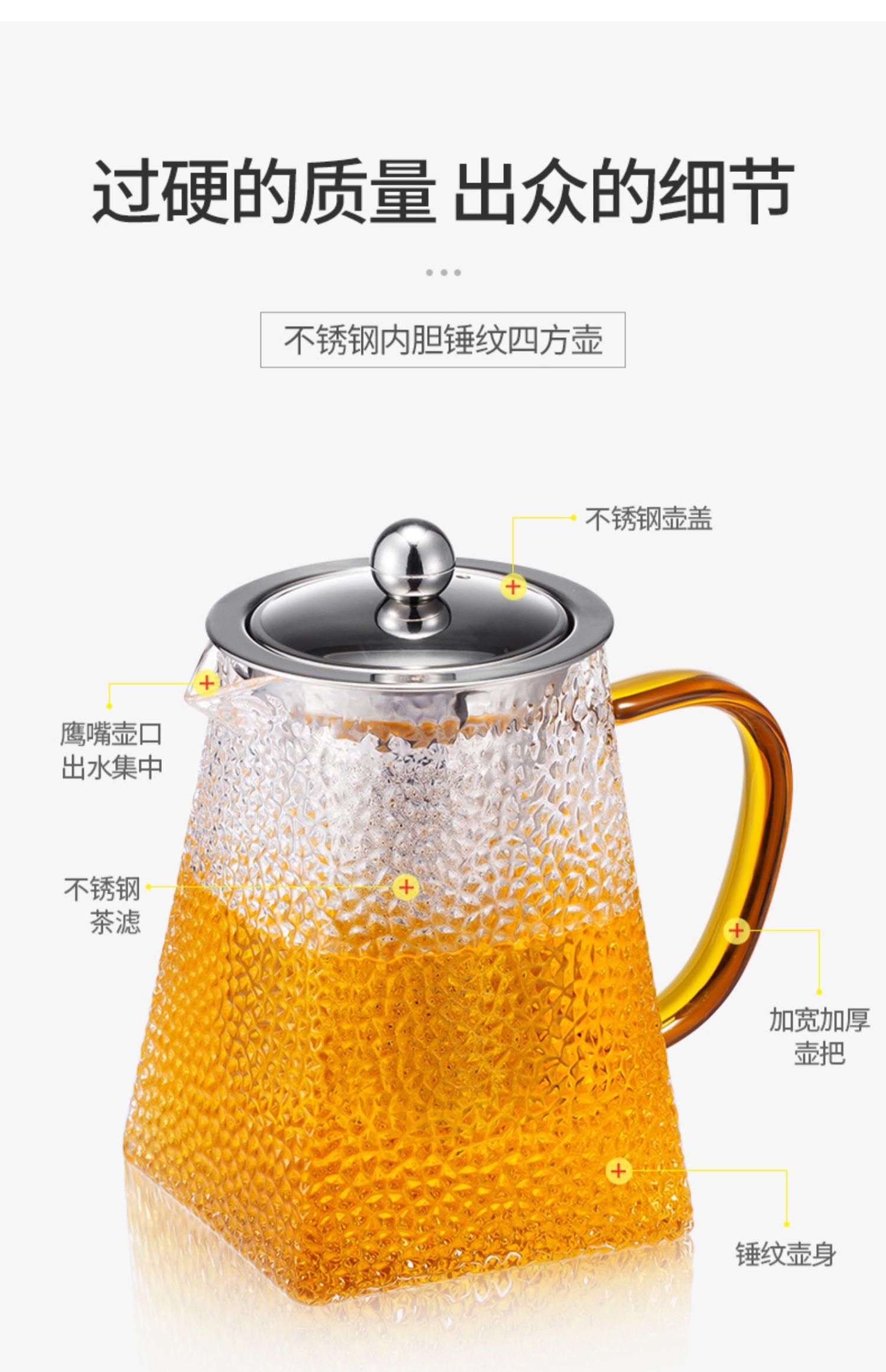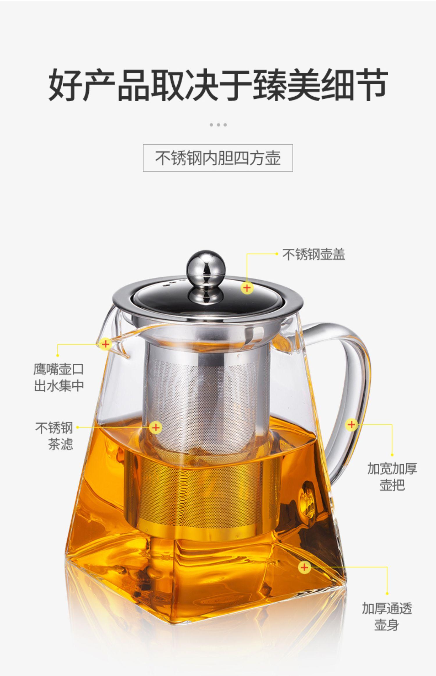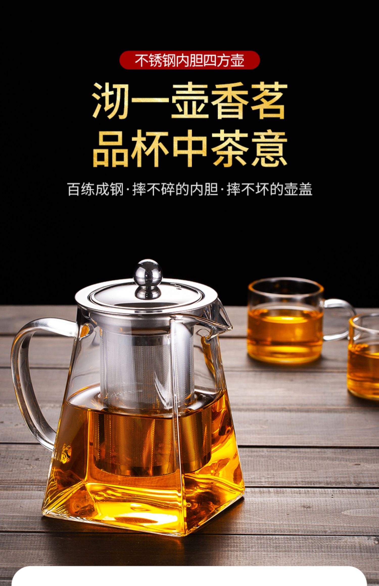 Bule de chá de vidro xyt bule de chá com filtro bule de chá doméstico resistente ao calor bule de chá de separação de água e chá conjunto