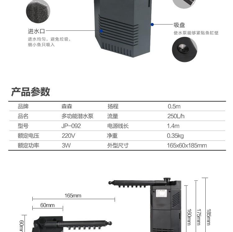 Aquário JP-092 bomba de filtro submersível multifuncional embutida em aquário JP-093 bomba de circulação