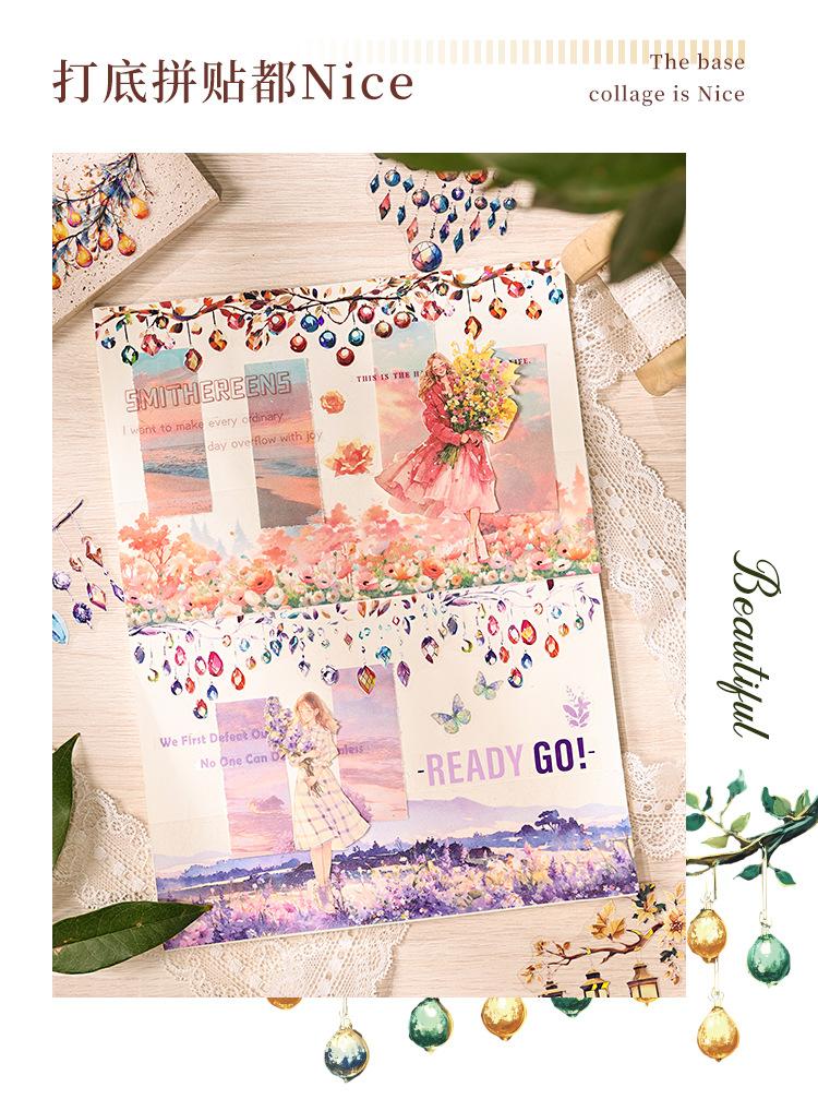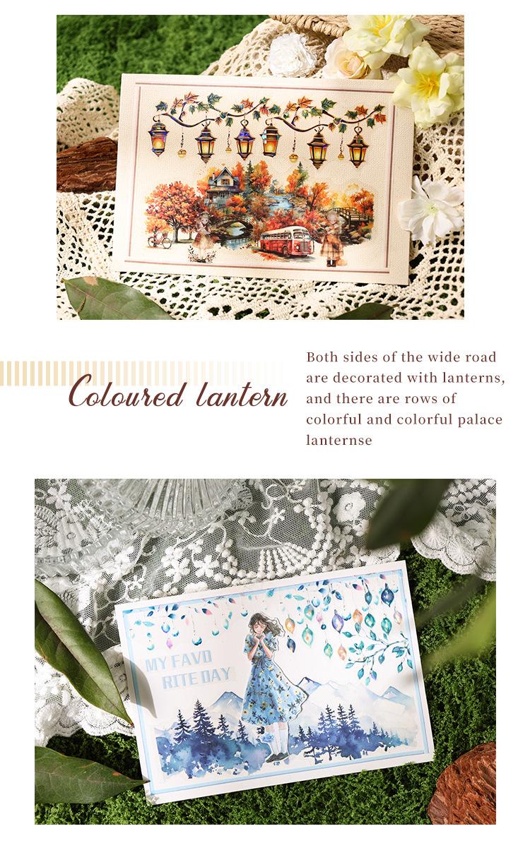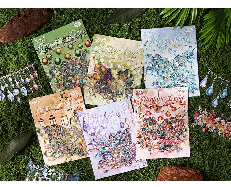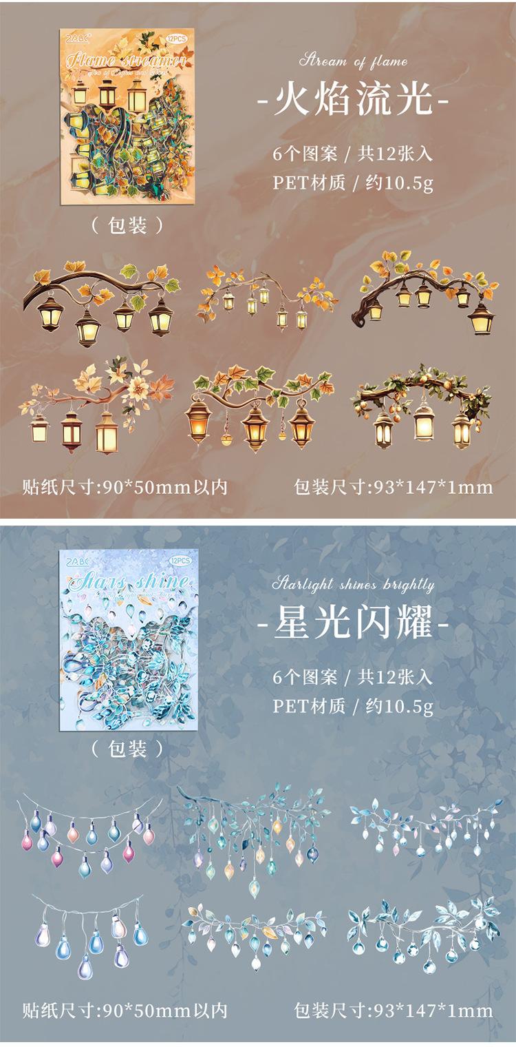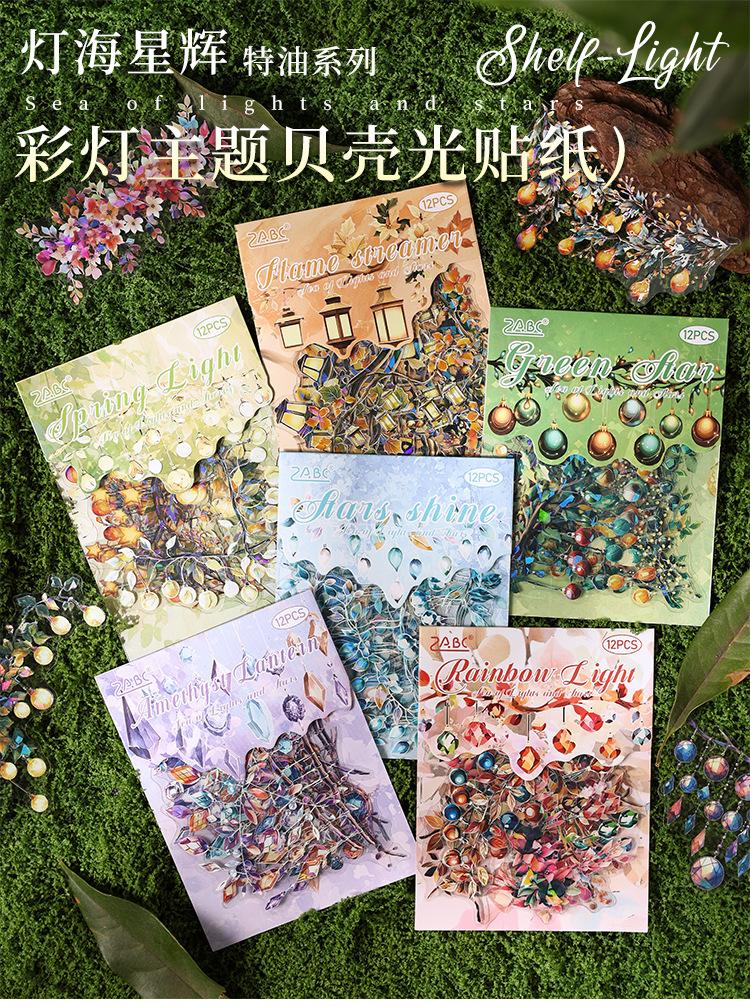 Mar de Lanternas Yuezhen Xinghui Laser Paisagem Pacote de Adesivos para Caderno Transfronteiriço Pet Adesivo Criativo Caderno Material Adesivo