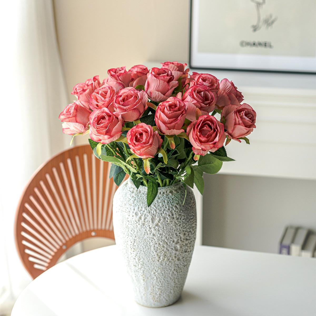 Nova Rosa Búlgara Flor Artificial Flor de Seda Buquê Decoração de Sala de Estar Enfeites de Arranjo de Flores Falsas de Plástico
