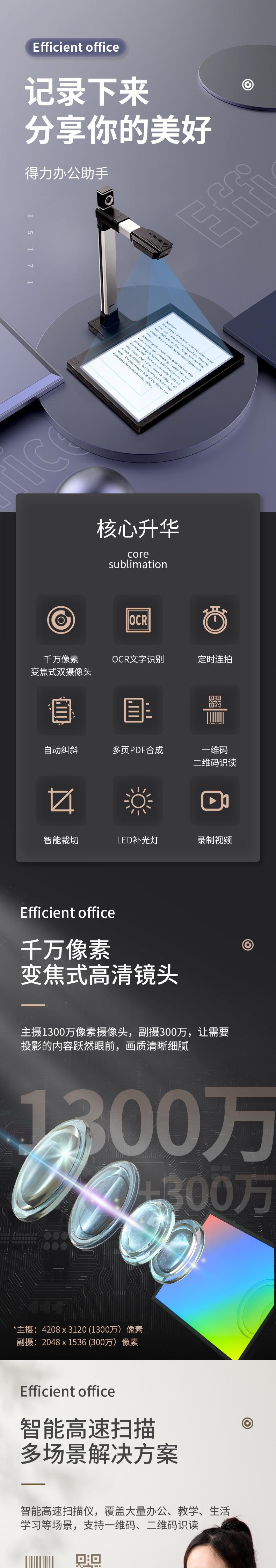 Deli 15171 Scanner Digitalização Rápida Contínua Pixel de Alta Definição a3 Office Teaching 13 milhões de câmeras altas