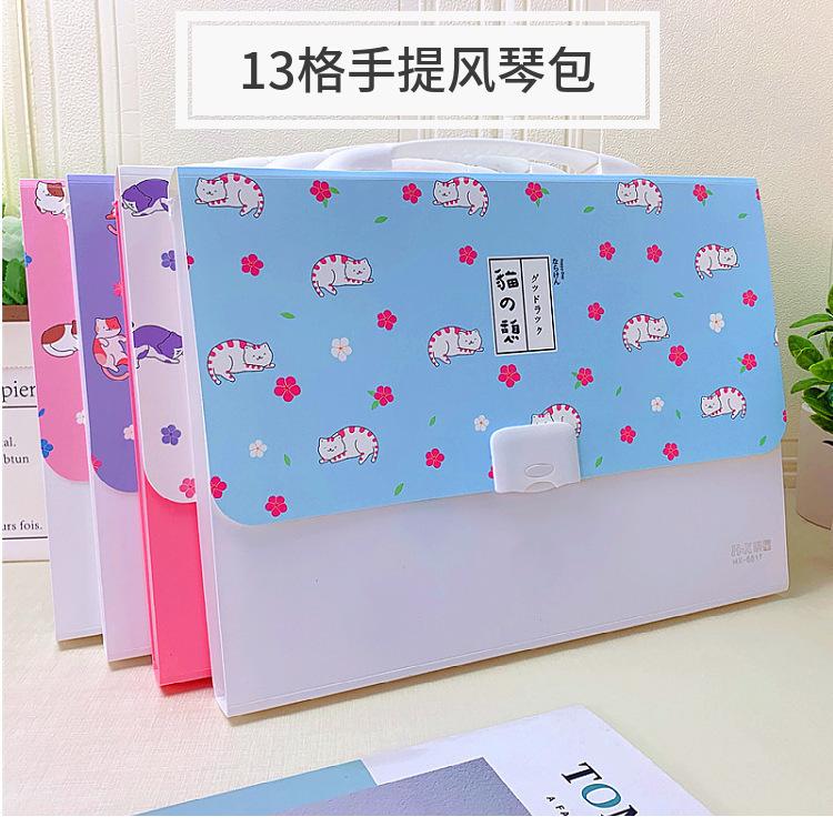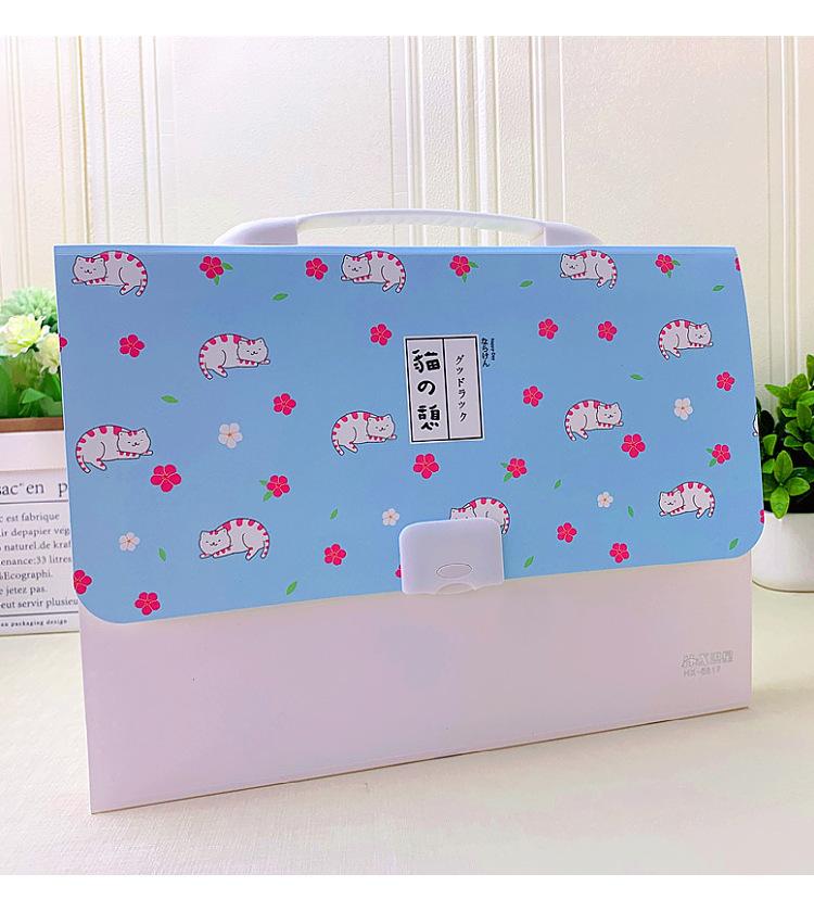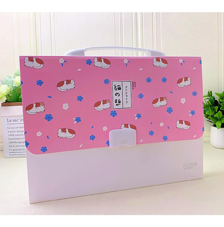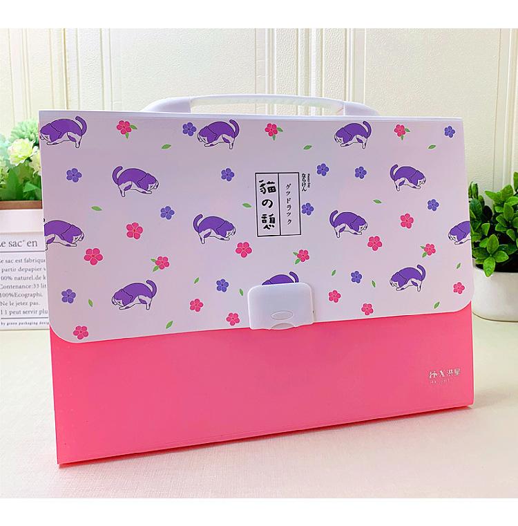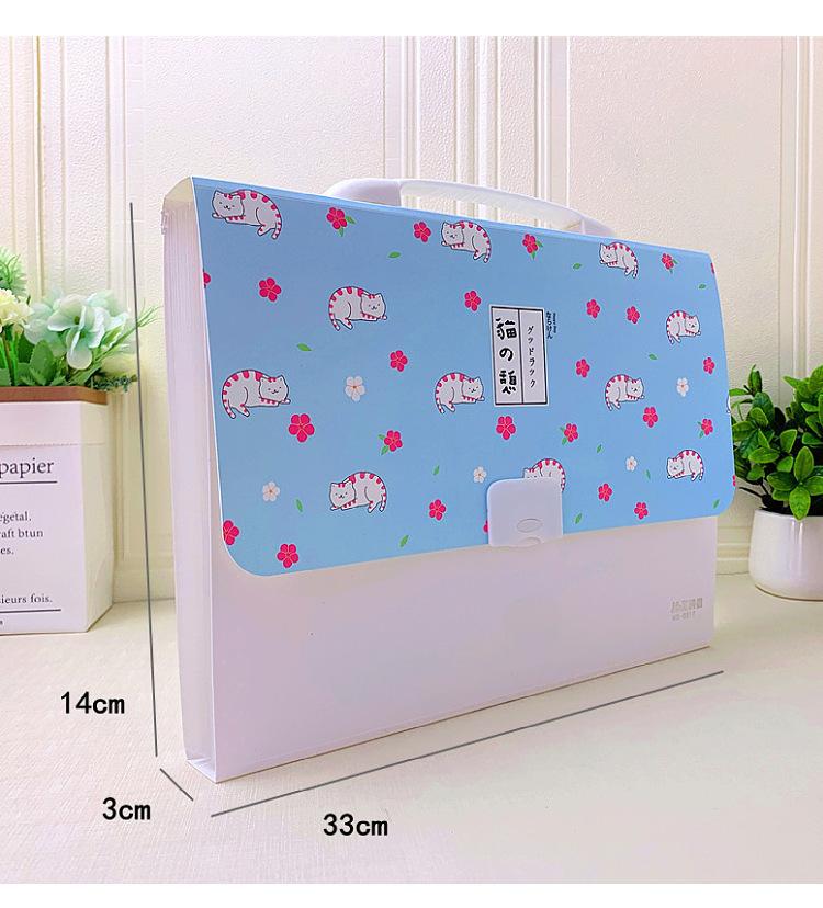 Pasta A4 multicamadas de papel transparente, bolsa de armazenamento de papel de desenho animado, bolsa de órgão, bolsa de informações portátil para estudantes