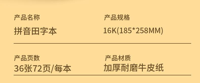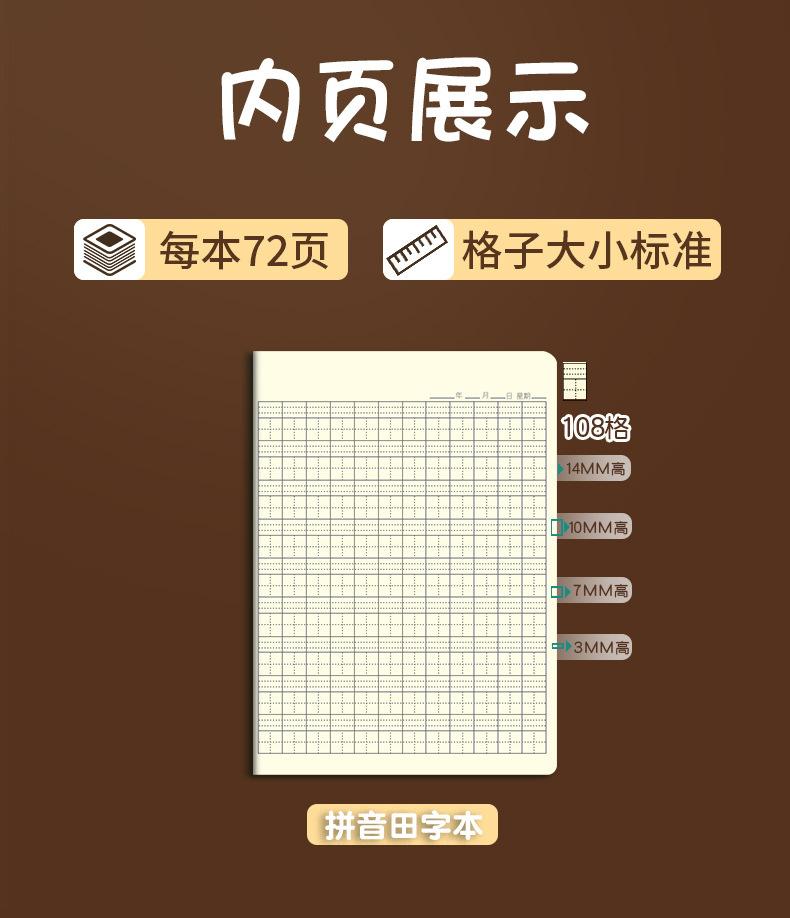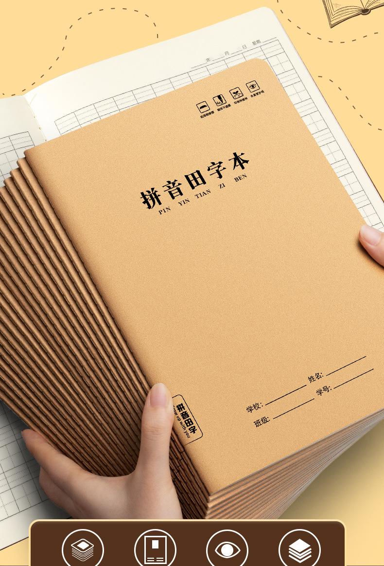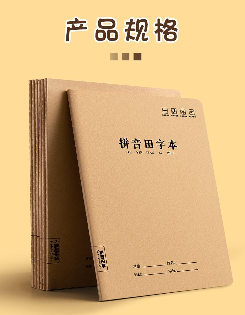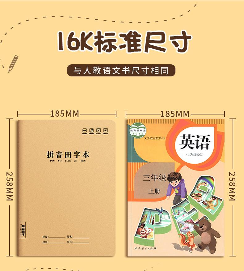 Papel Kraft Tian Zi Ben Pinyin 16K Espessado Grau 3-6 Chinês Pinyin Escola Média Escola Primária Livro de Exercícios
