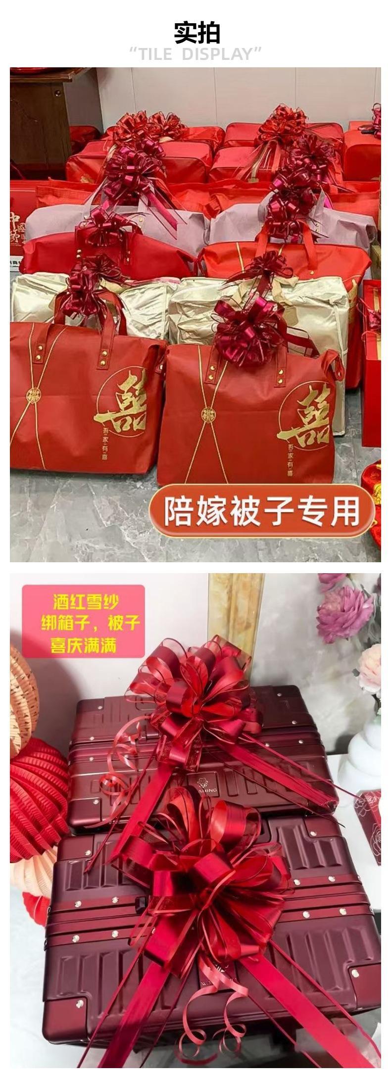 (double-layered korean bouquet) happy word big red snow gauze metal style, (oversized double-layer korean styl...
