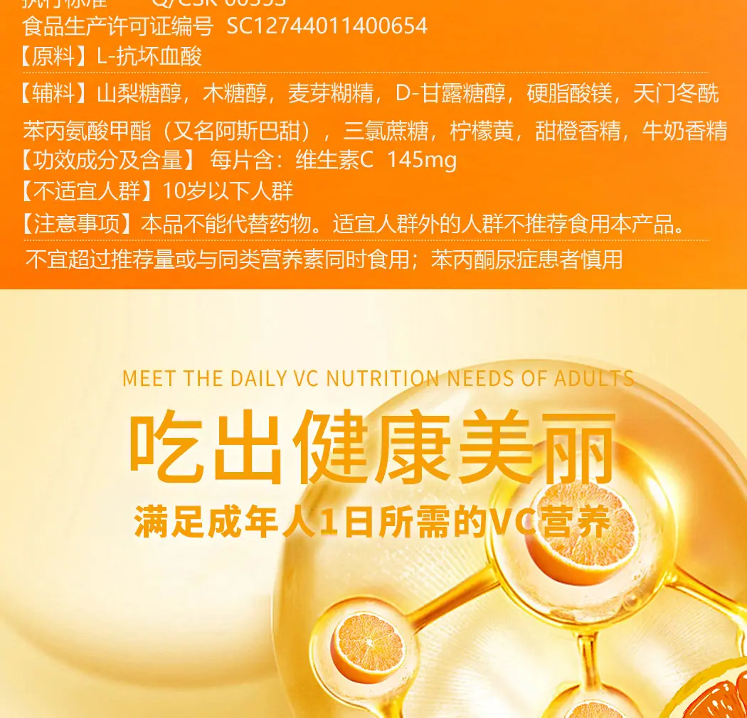 Compre 60 Comprimidos de Alto Conteúdo de Vitamina C Comprimidos Mastigáveis Vc145Mgl-Ácido Ascórbico Comprimidos Vc para Mulheres Grávidas e Lactantes Comprimidos Vc Atacado no atacado no Joom.pro