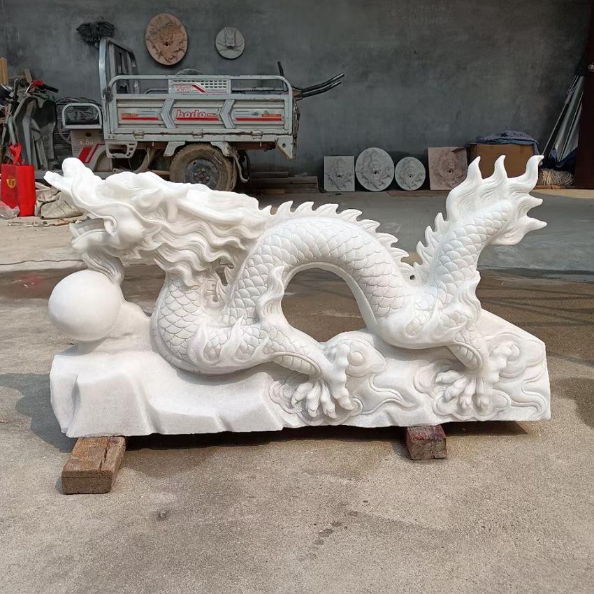 Dragão de pedra voando escultura mármore pôr do sol vermelho escultura em pedra dois dragões brincando com pérolas dragão nadando corpo inteiro circulando escultura ornamentos Dragão de pedra