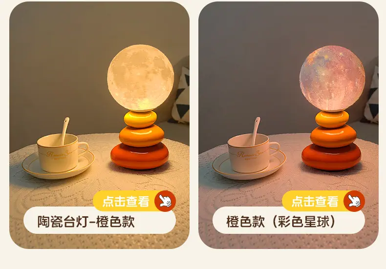 Luminária de Mesa Cerâmica Creme Vento Advanced Sense Luminária de Cabeceira Quarto Sono Planeta Luminária Atmosfera Luminária Decoração Luminária Noturna Pedra Empilhada