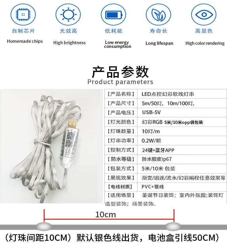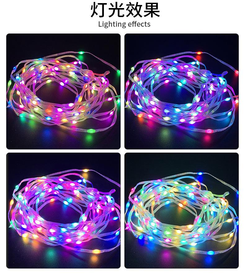 Fio de cobre verde transfronteiriço, corda de luz de árvore de natal, controle remoto, fogos de artifício, luz, flor, planta verde, rattan, céu estrelado, decoração de jardim, luz