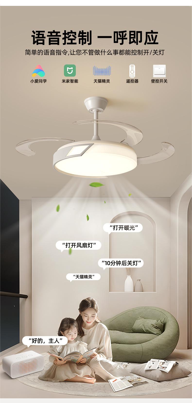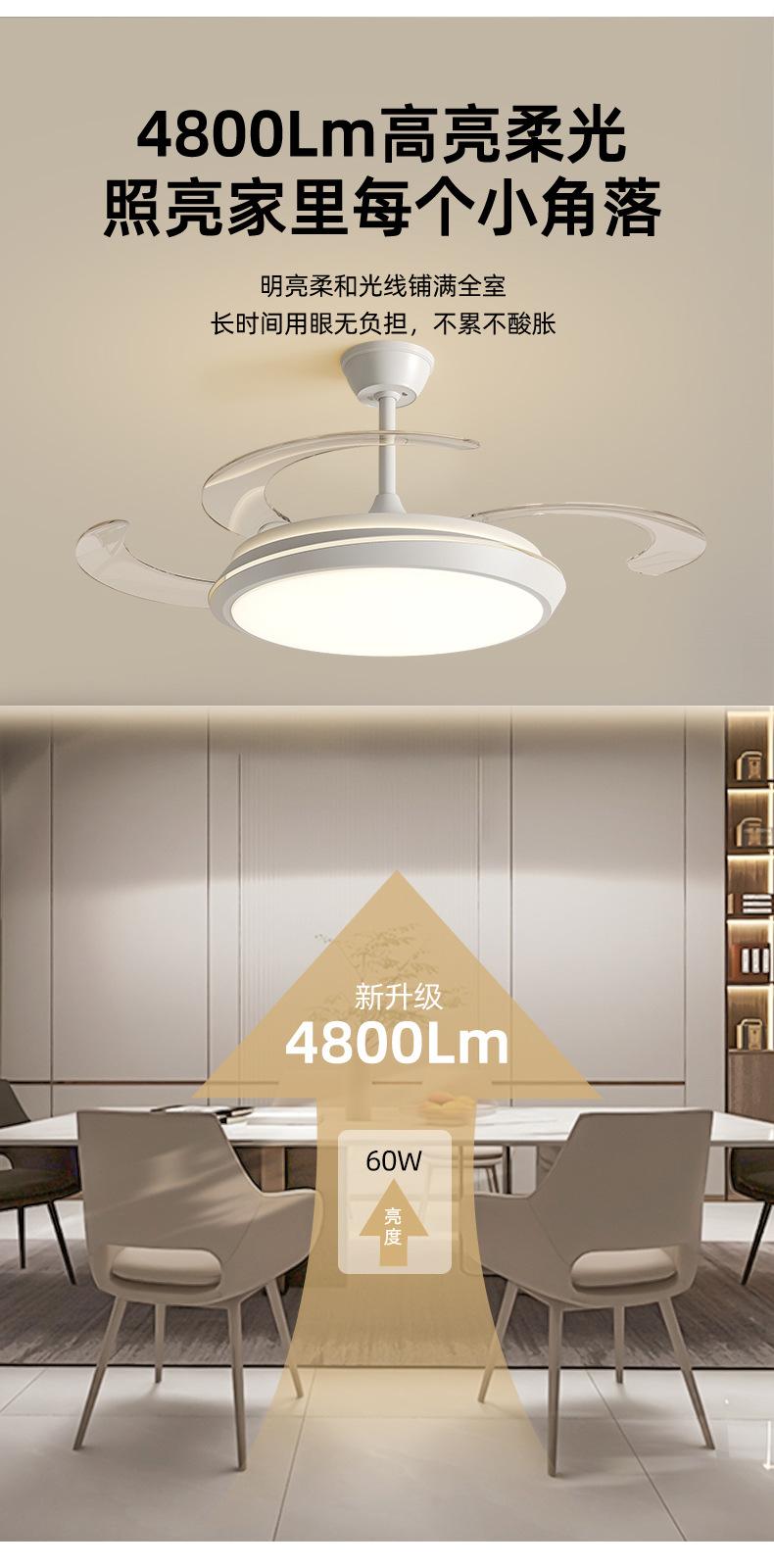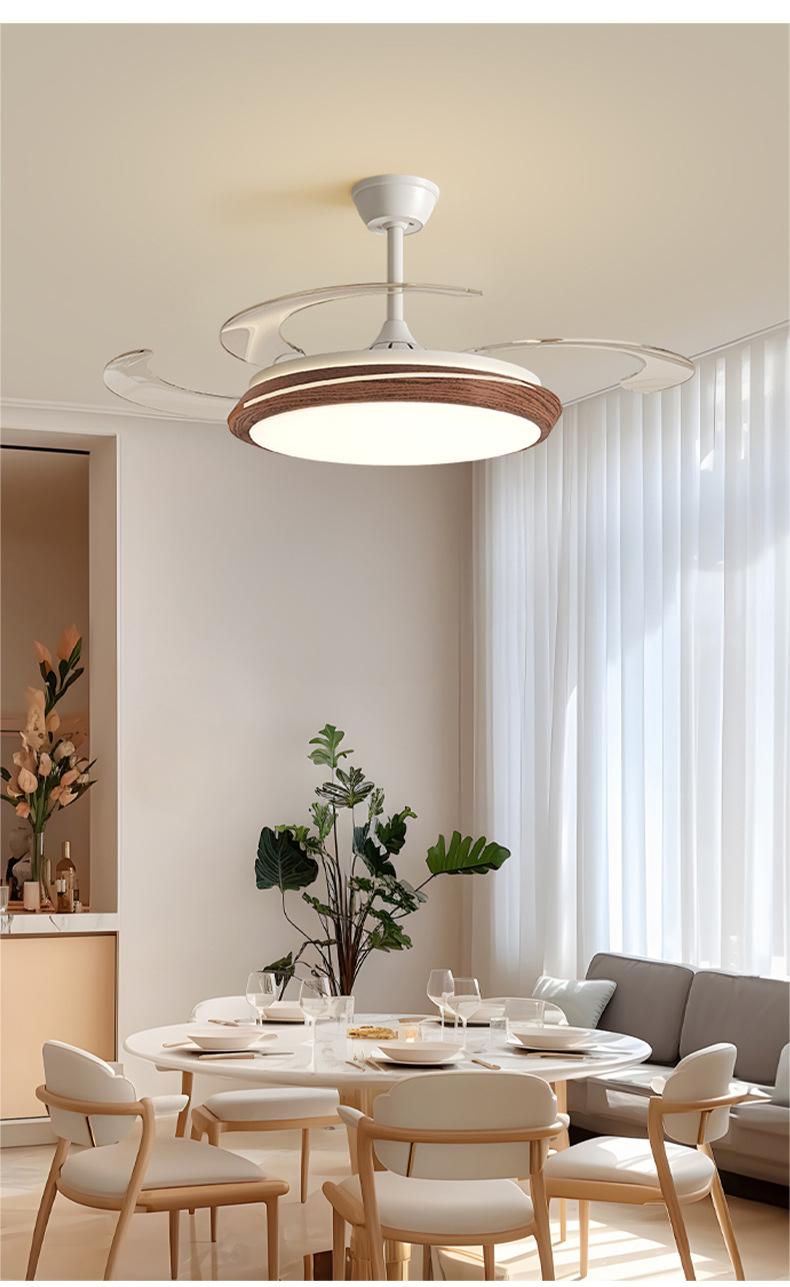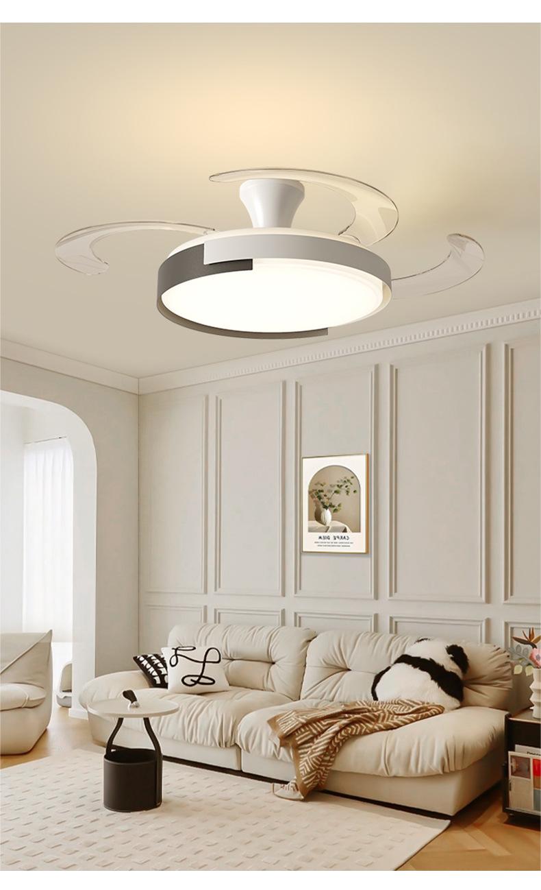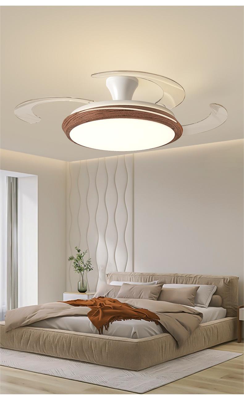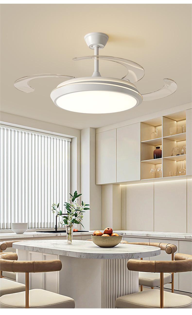 Ventilador invisível para sala de estar simples e moderna, luz de conversão de frequência inteligente, ventilador de luz para sala de jantar, luz integrada, espectro total, ventilador de teto para quarto