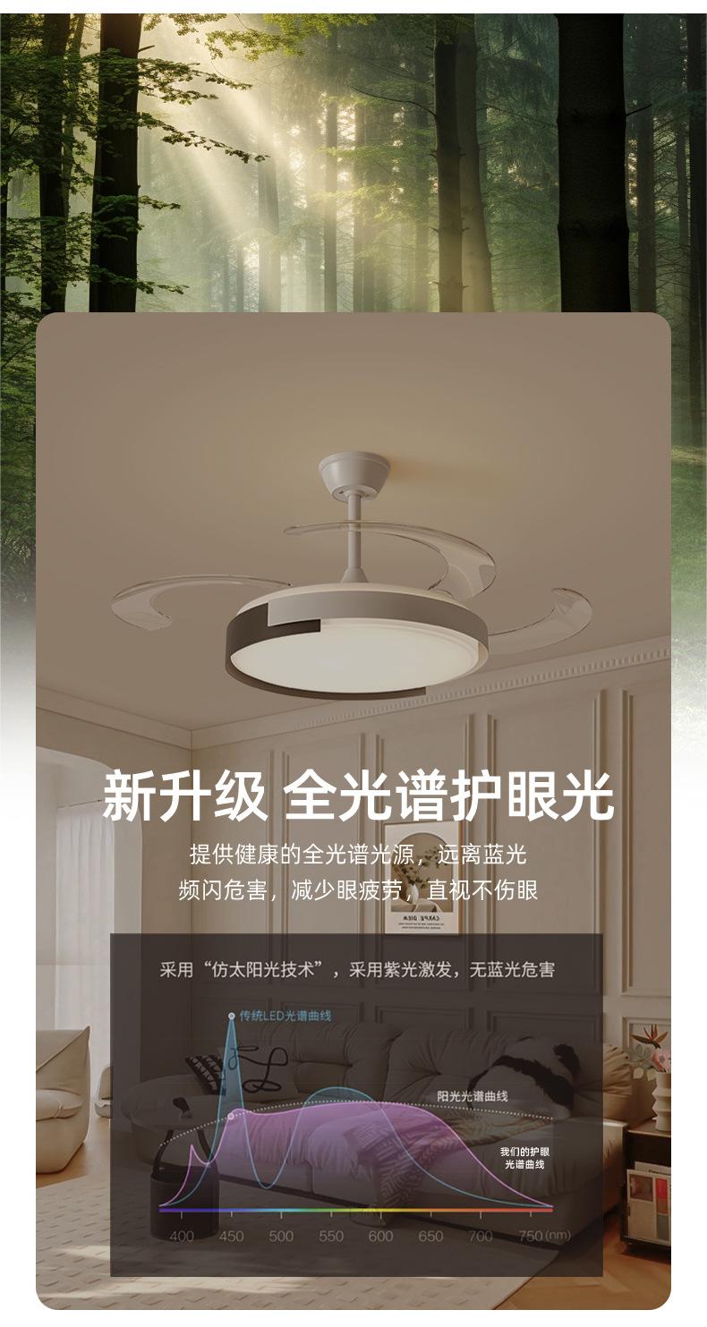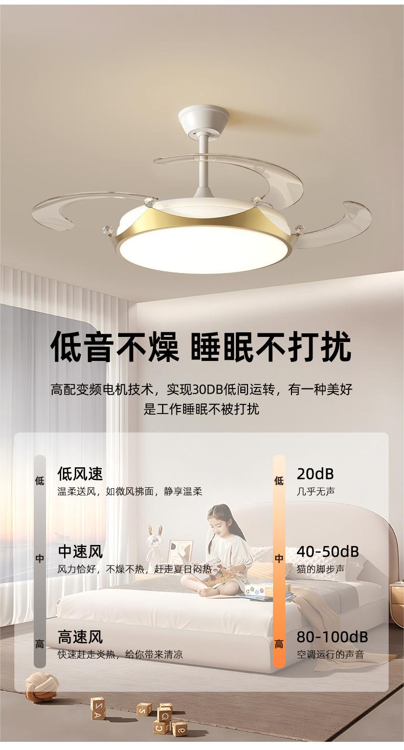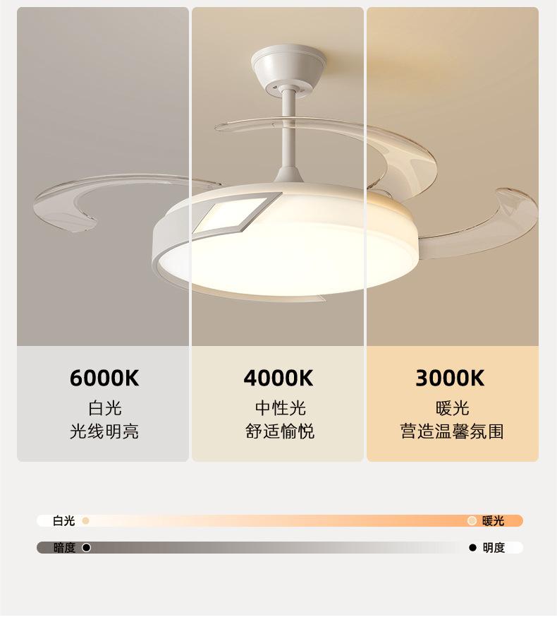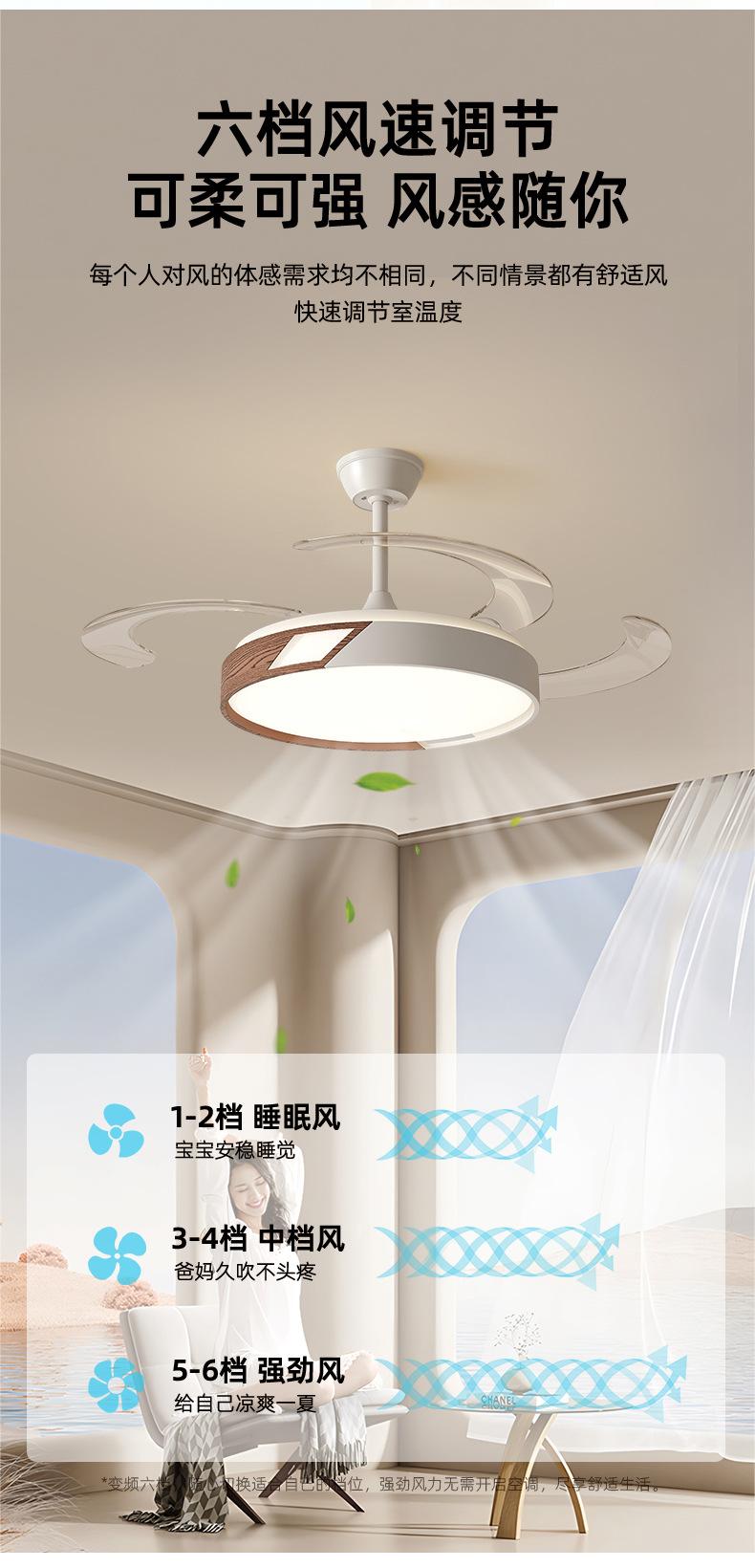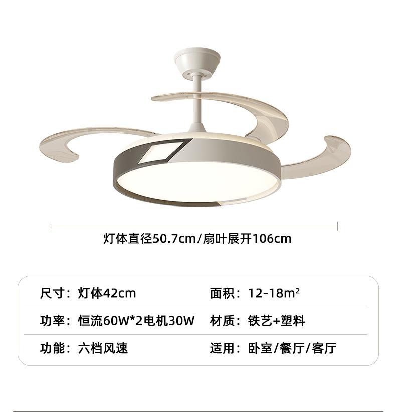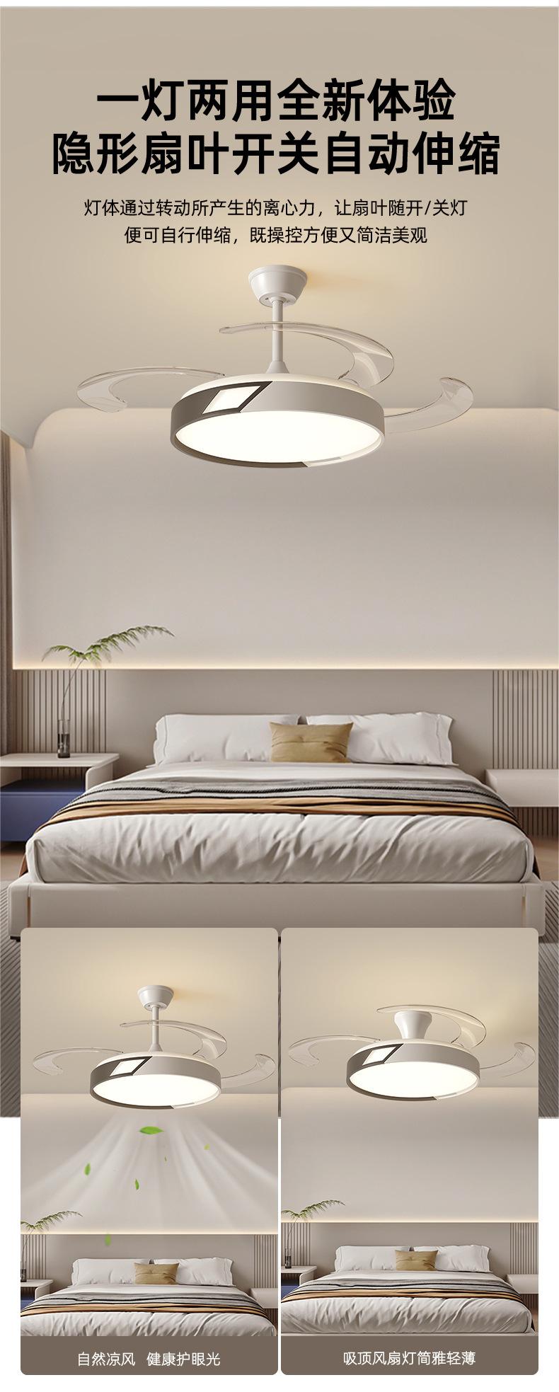 Ventilador invisível para sala de estar simples e moderna, luz de conversão de frequência inteligente, ventilador de luz para sala de jantar, luz integrada, espectro total, ventilador de teto para quarto