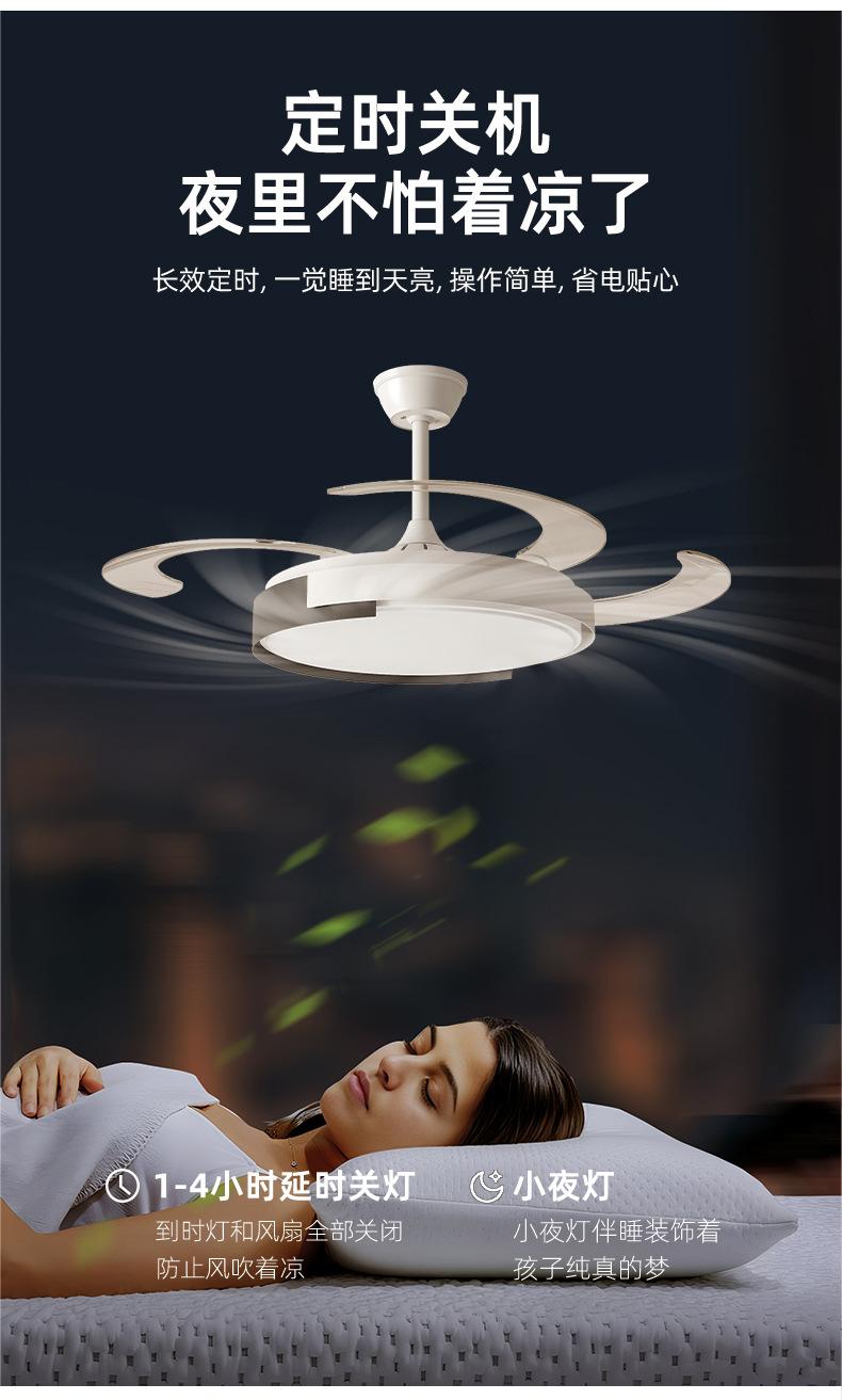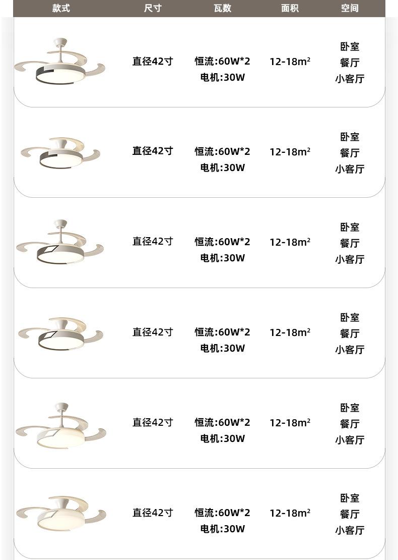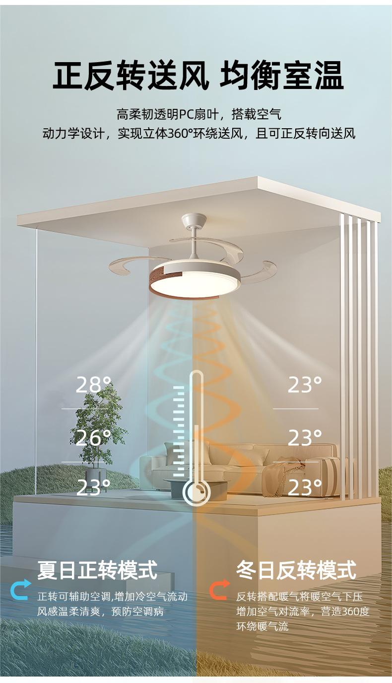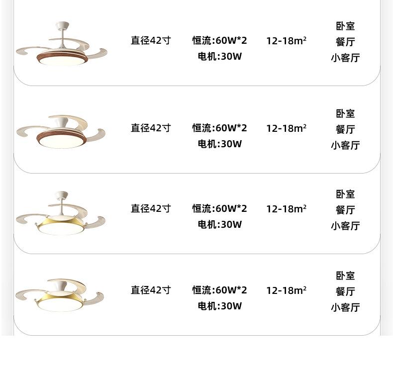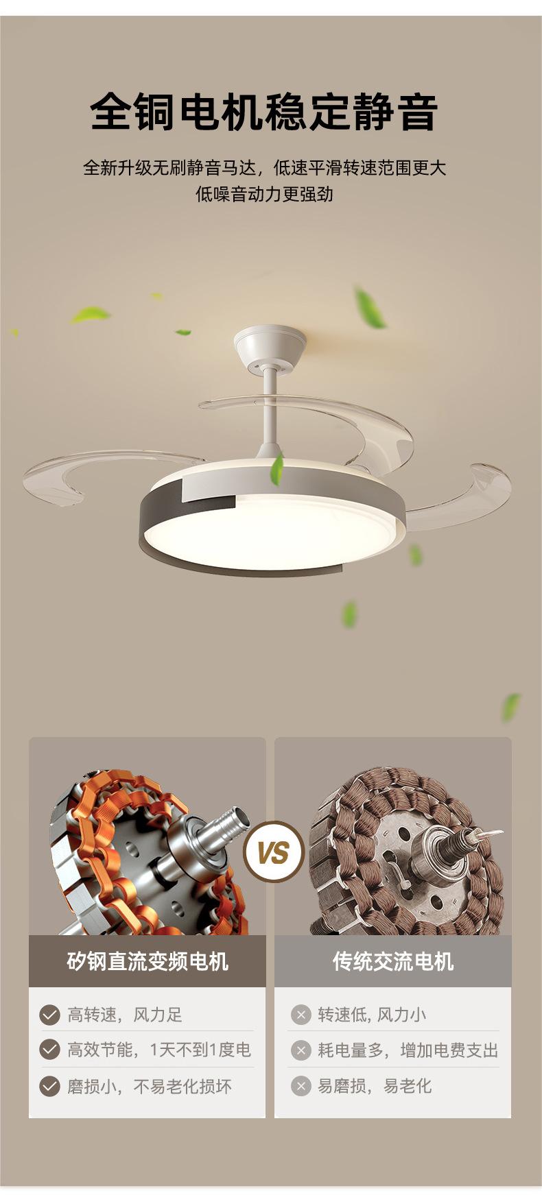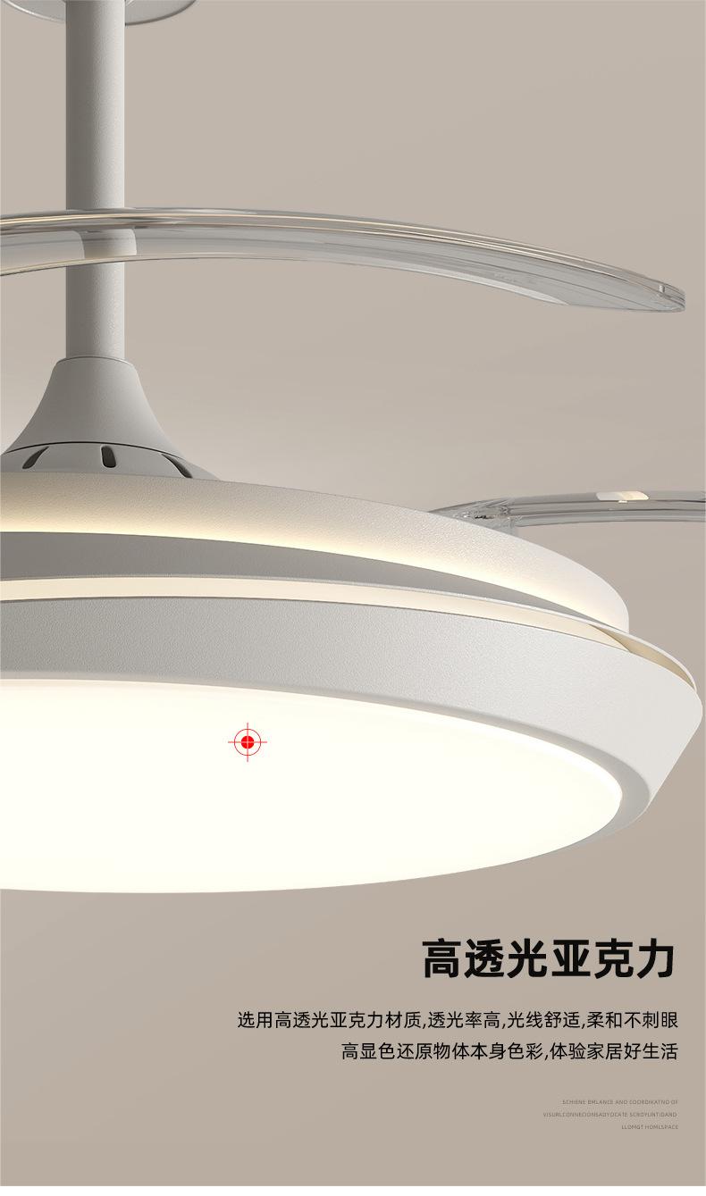 Ventilador invisível para sala de estar simples e moderna, luz de conversão de frequência inteligente, ventilador de luz para sala de jantar, luz integrada, espectro total, ventilador de teto para quarto