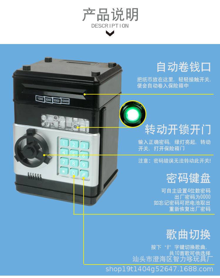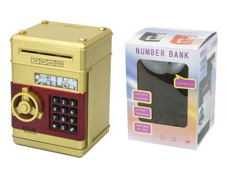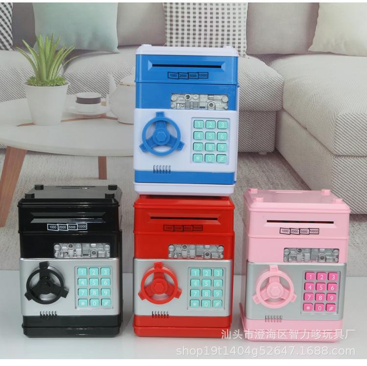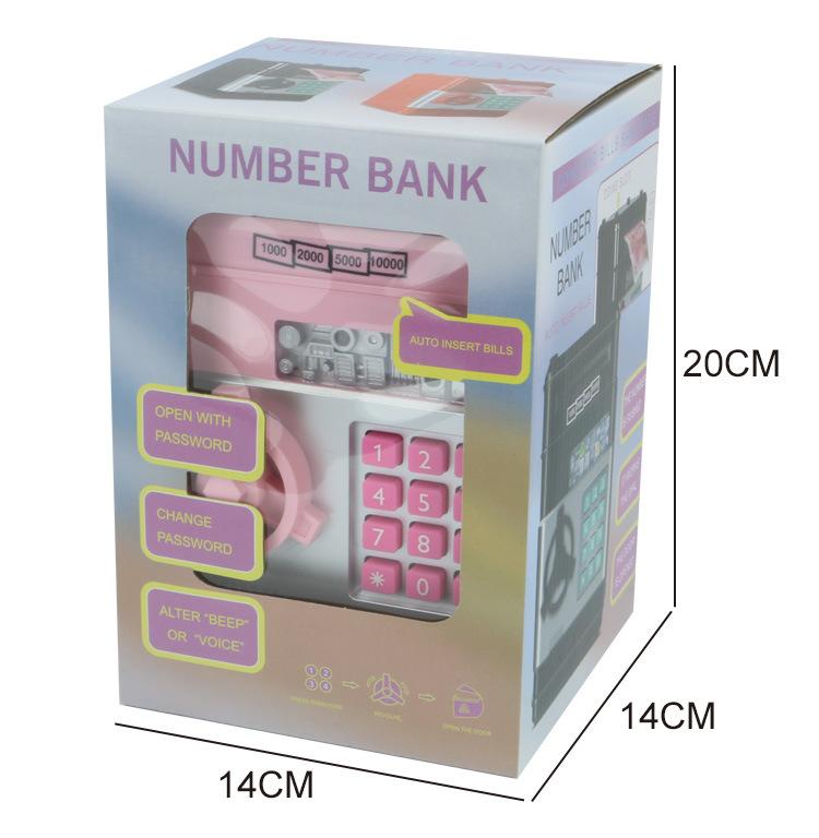 Fully open door password piggy bank with music black, Full door password piggy bank with music light pink, Ful...
