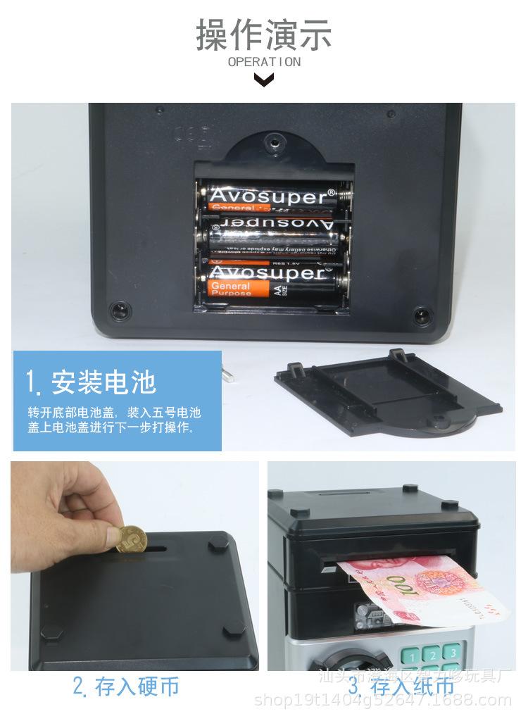 Caixa de senha de desenho animado infantil Cofrinho ATM Cofre Gabinete Música Rolo automático Dinheiro Poupança Banco Depósito Máquina Brinquedo