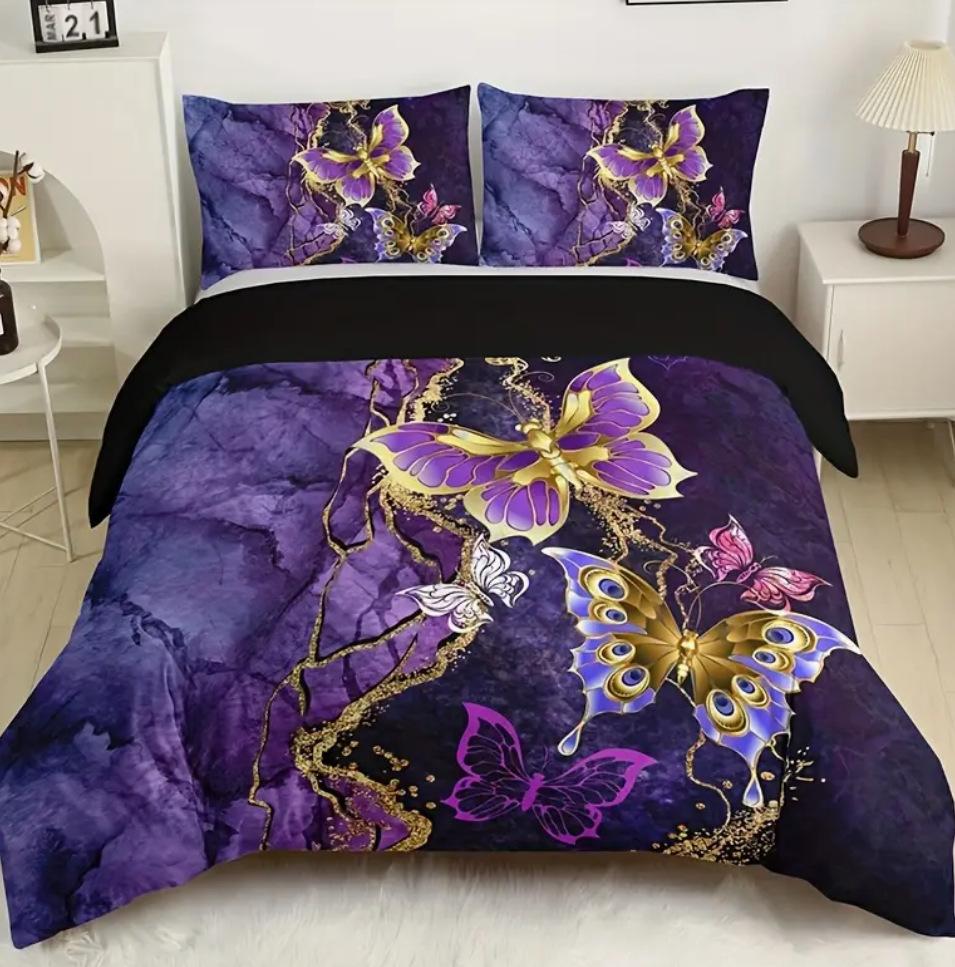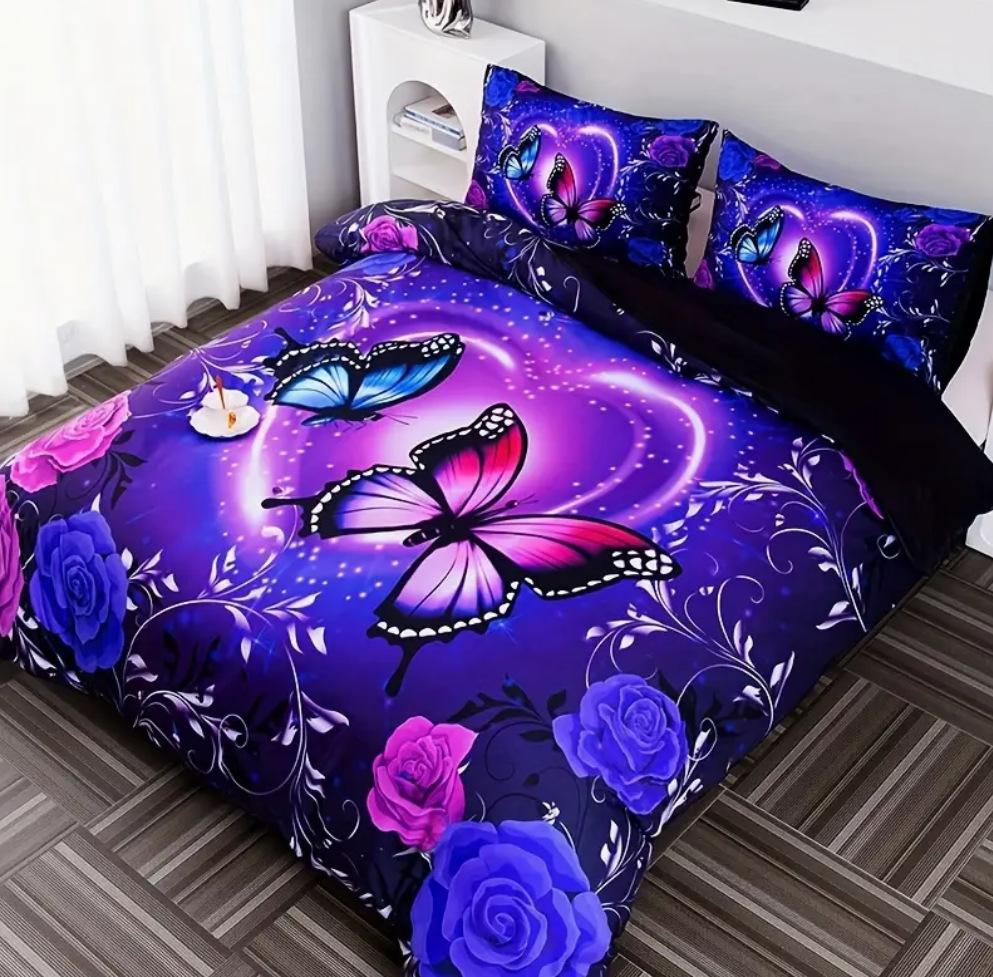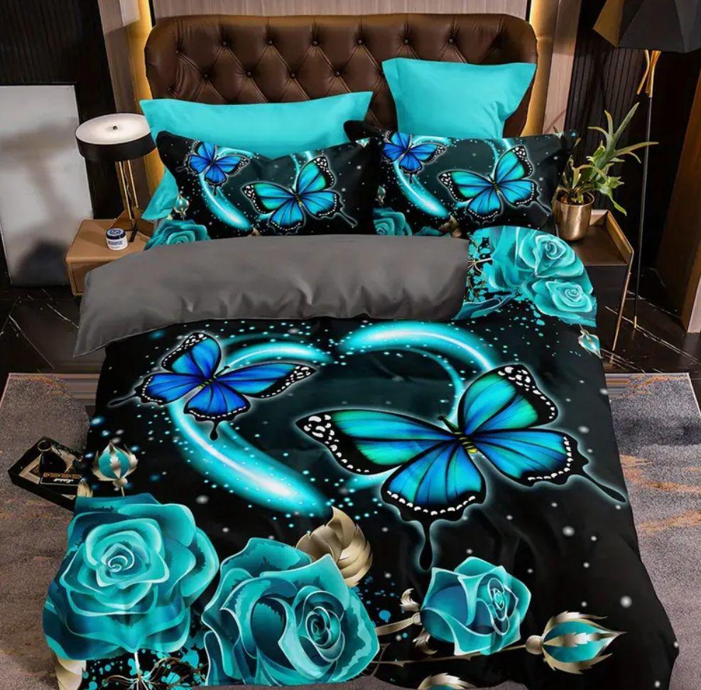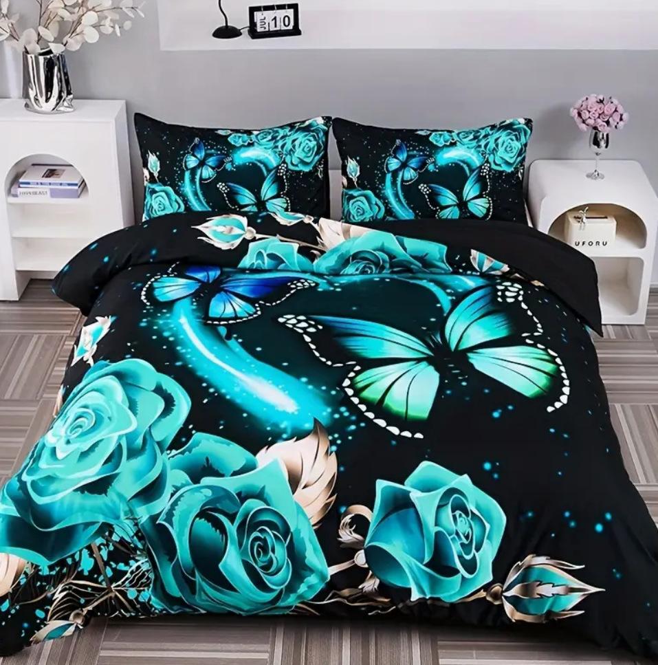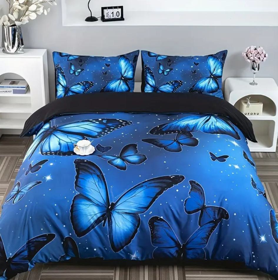 Conjunto de cama de três peças transfronteiriças Têxteis para o lar Amazon Aliexpress Capa de colcha com estampa de borboleta Exportação Impressão digital 3D