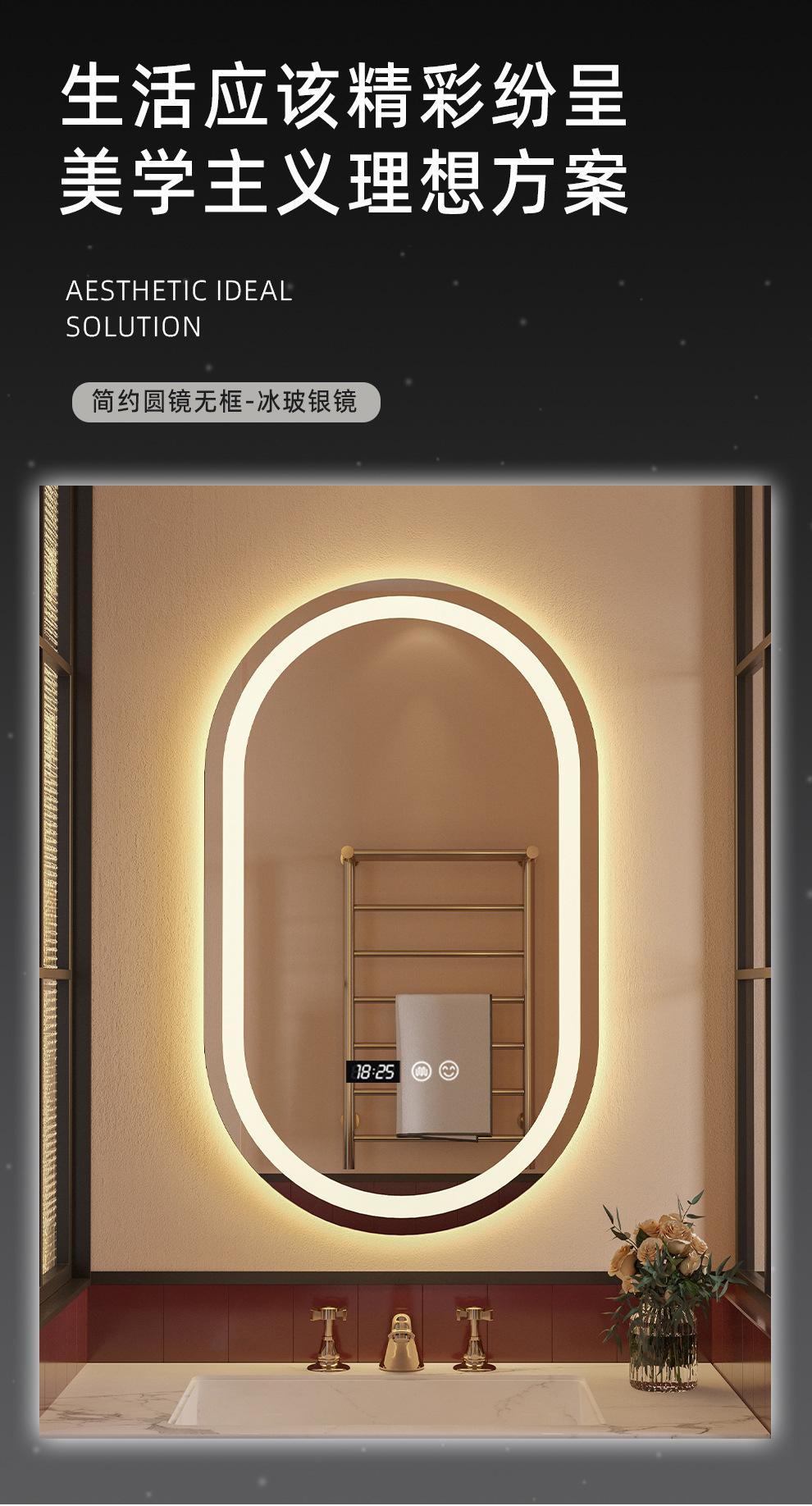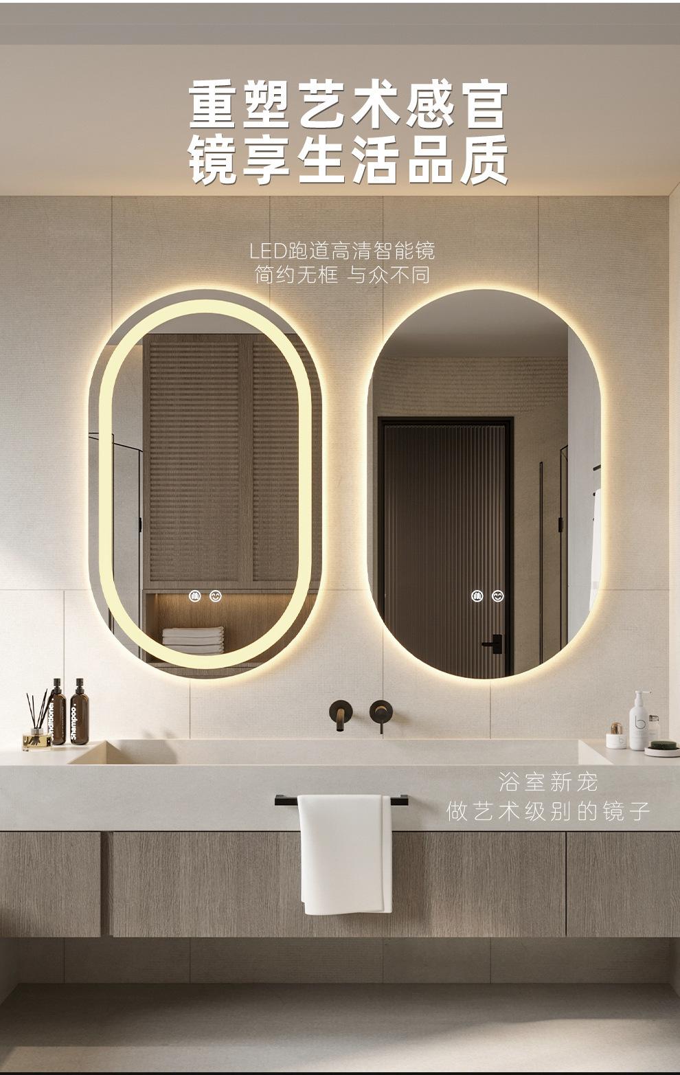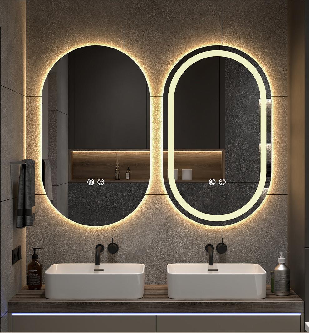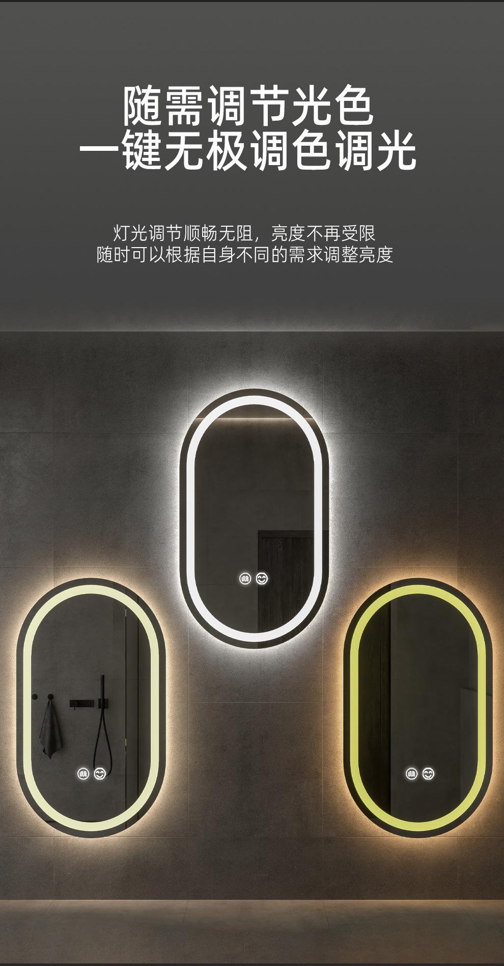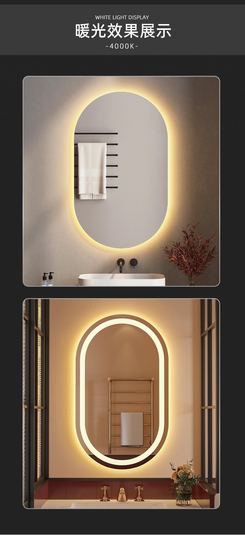 Espelho de Banheiro Inteligente Runway Oval de Parede LED com Luz Maquiagem e Vestir Espelho de Banheiro Tela Sensível ao Toque Montado na Parede