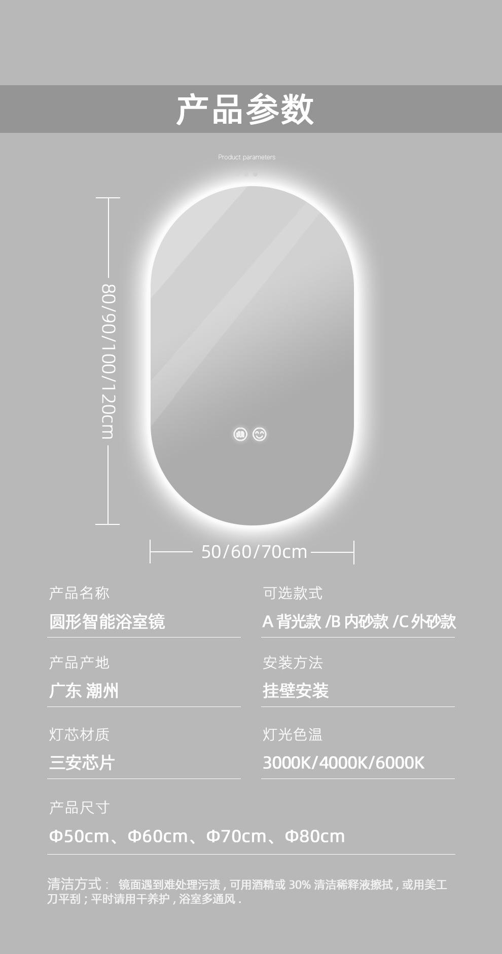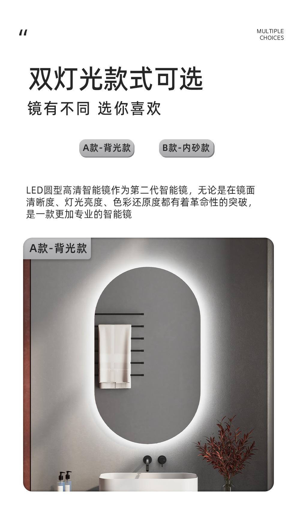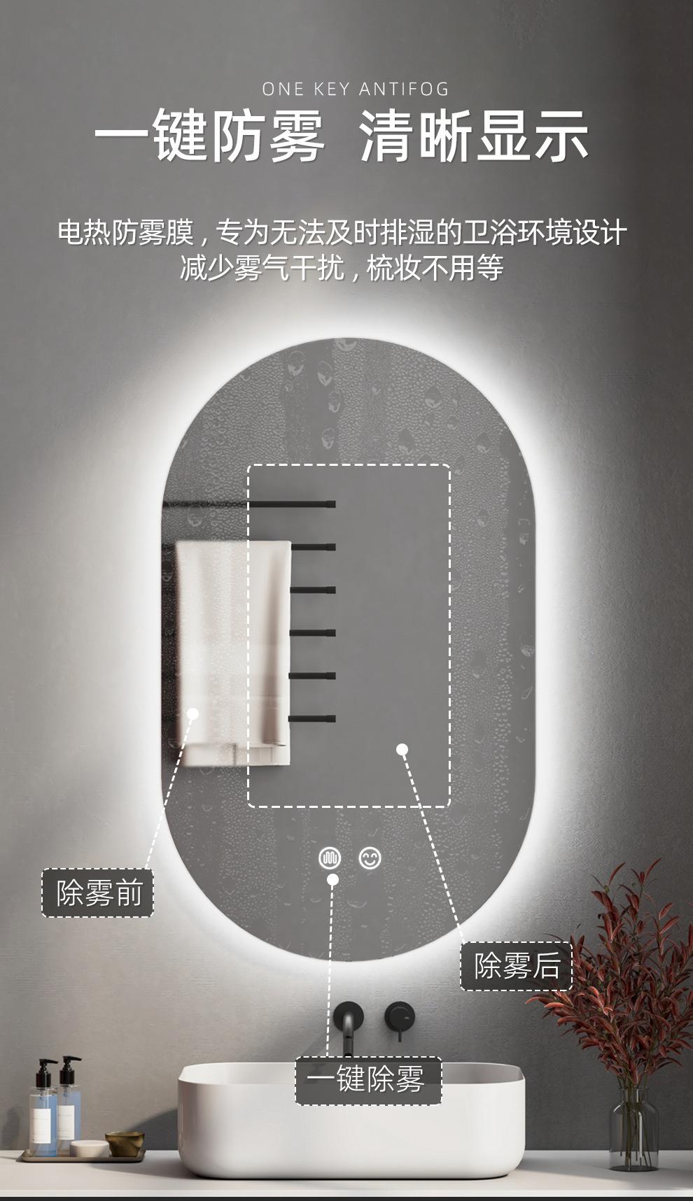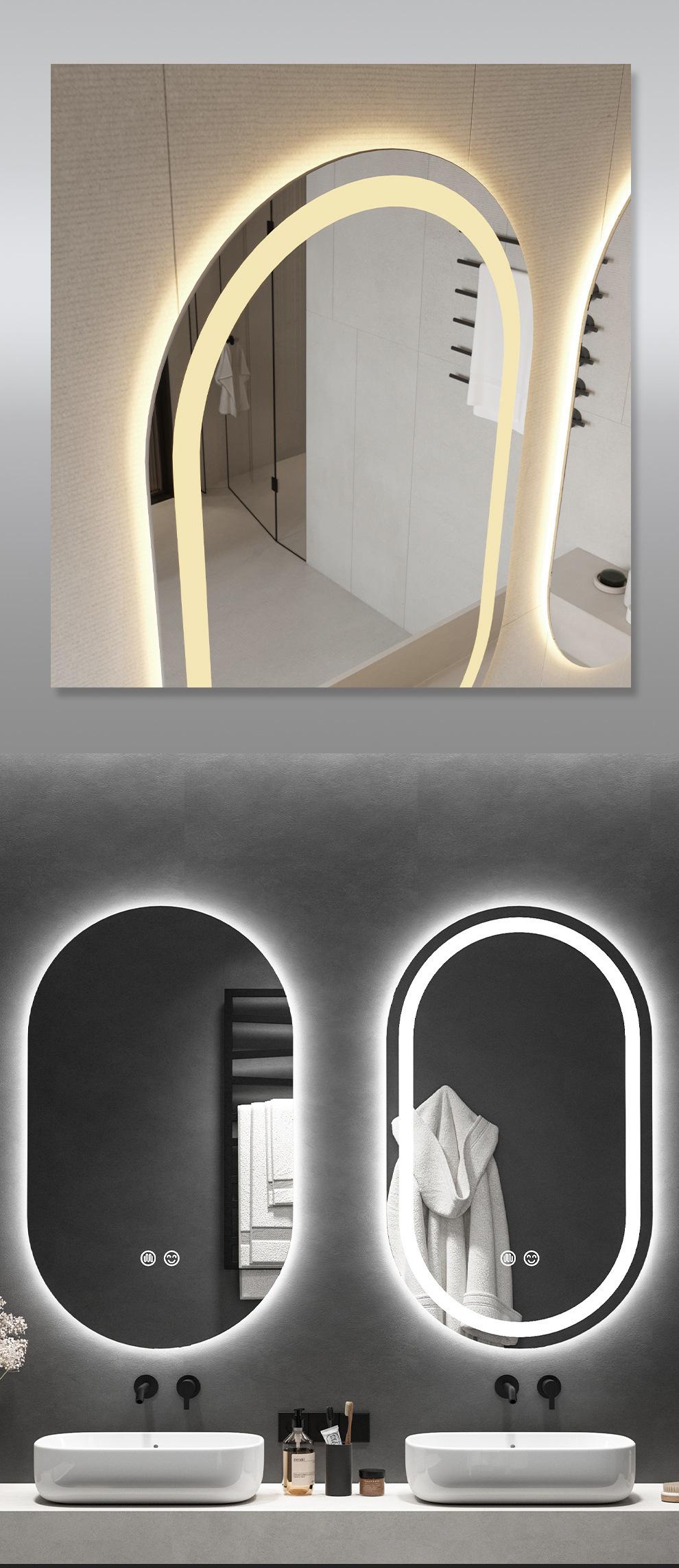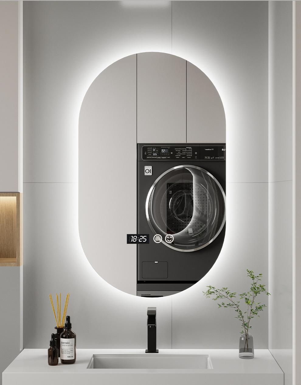 Espelho de Banheiro Inteligente Runway Oval de Parede LED com Luz Maquiagem e Vestir Espelho de Banheiro Tela Sensível ao Toque Montado na Parede