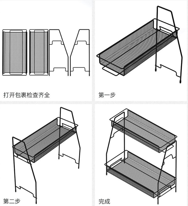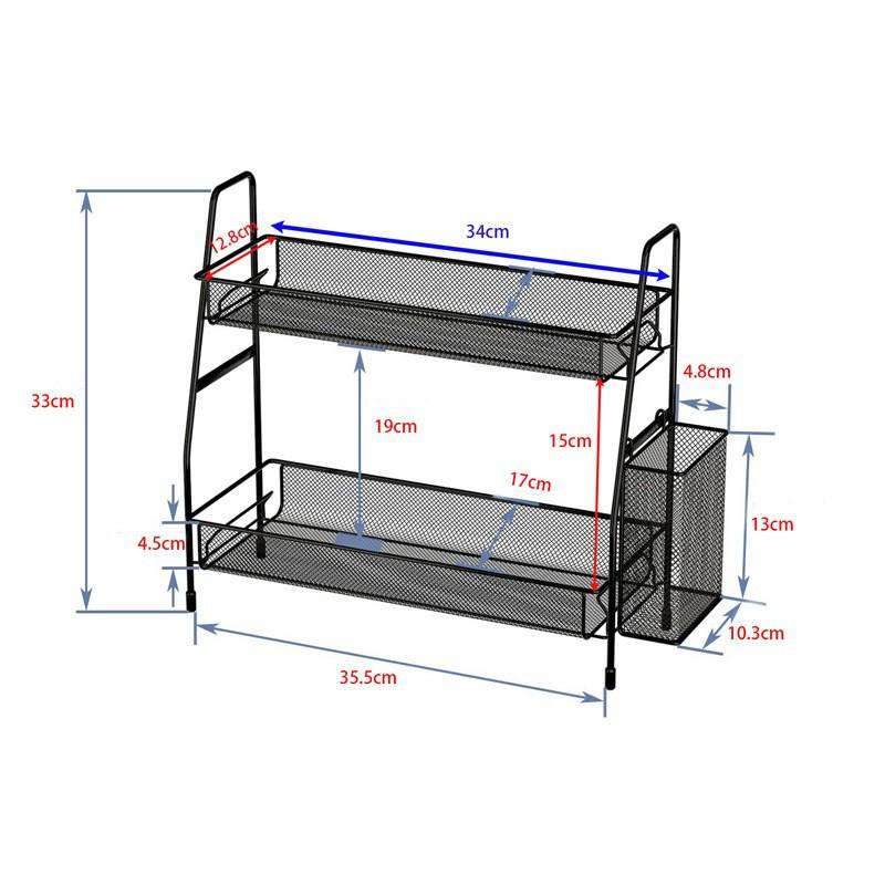 Prateleira de armazenamento de ferro forjado, prateleira de armazenamento de camada dupla removível para mesa, prateleira ajustável para cozinha, banheiro, prateleira de armazenamento de cosméticos