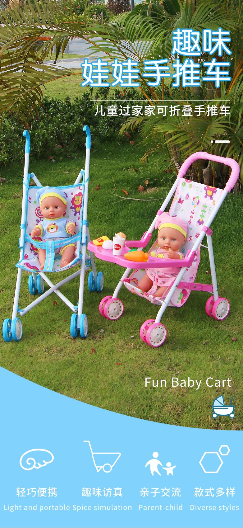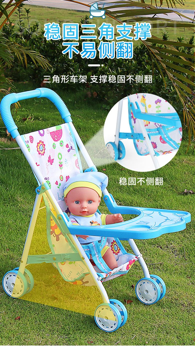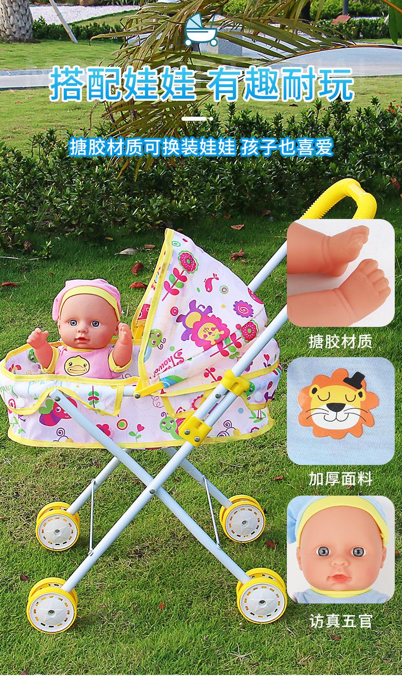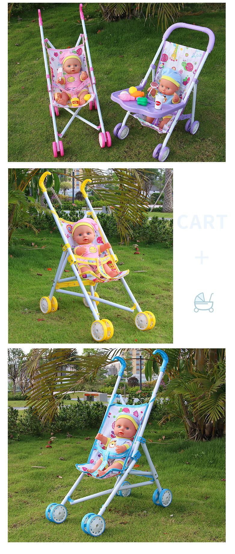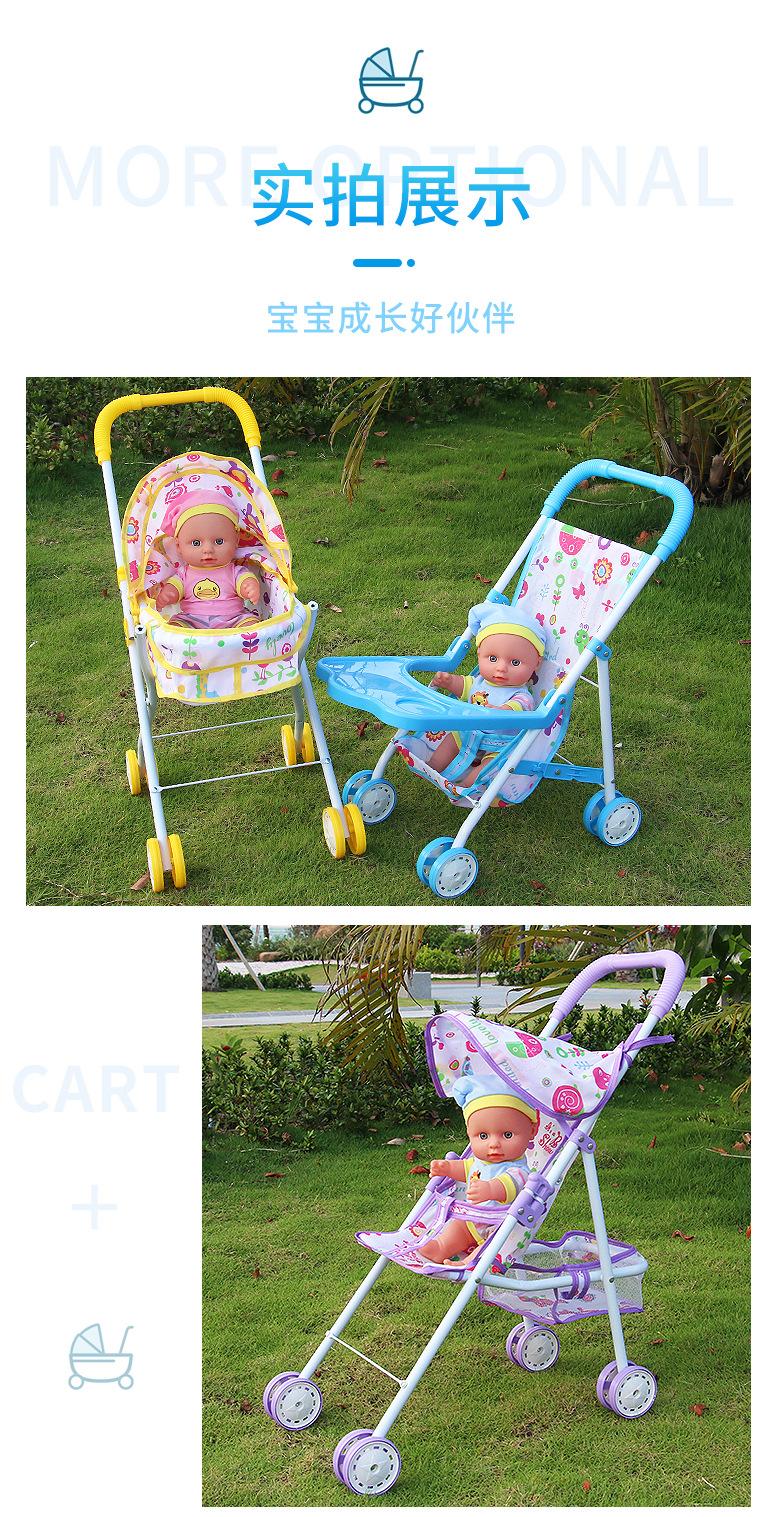Venda Direta Atacado Carrinho de Bebê de Ferro com Boneca Artificial Menina Brinquedo Casa de Bonecas Andador de Bebê