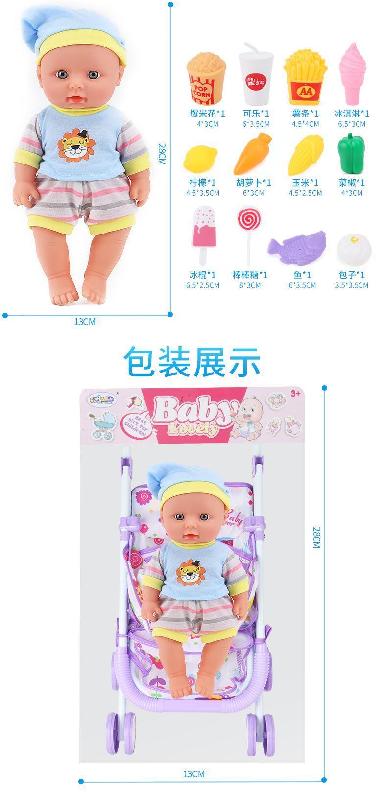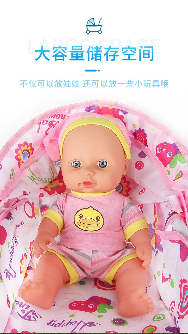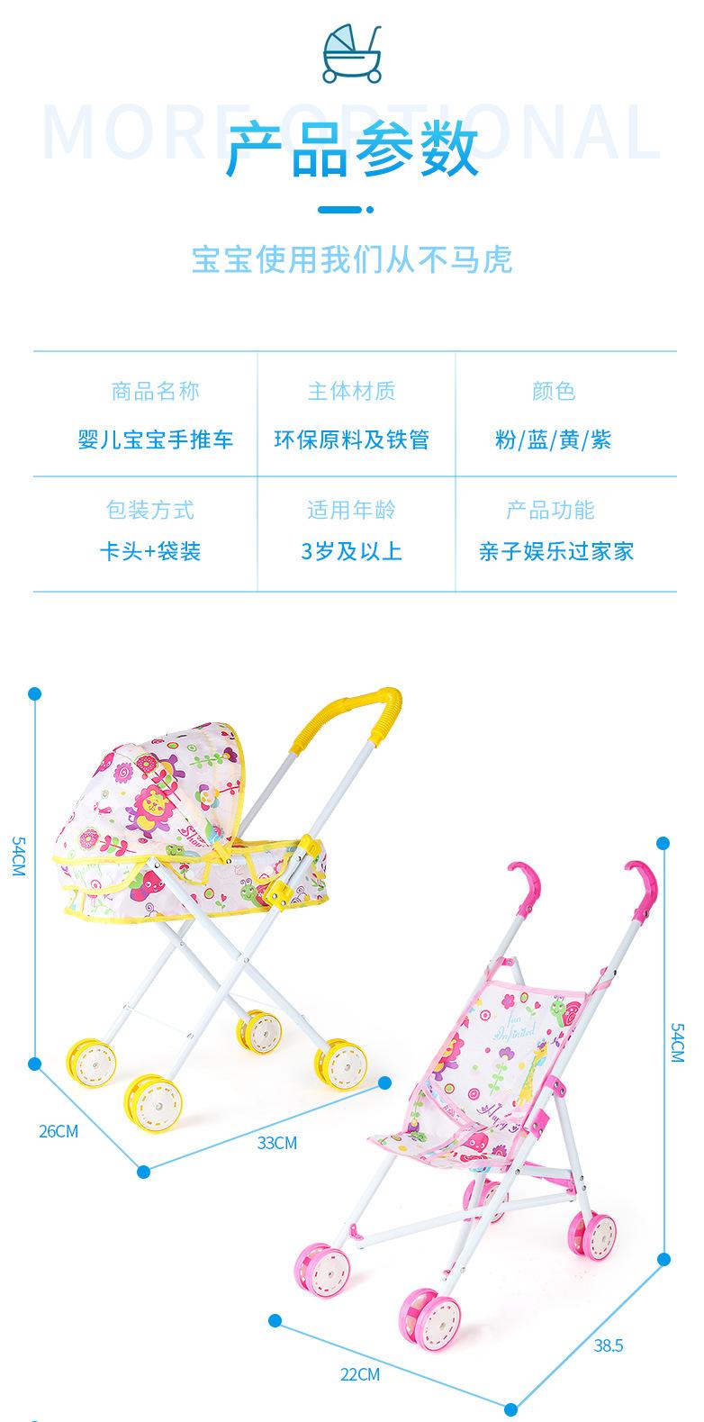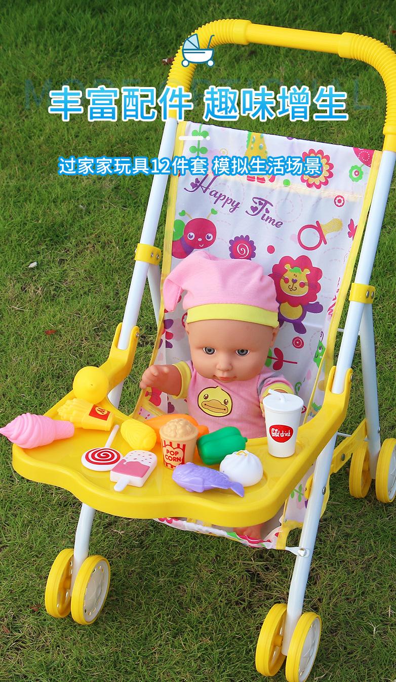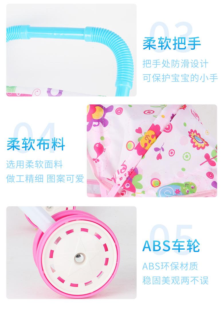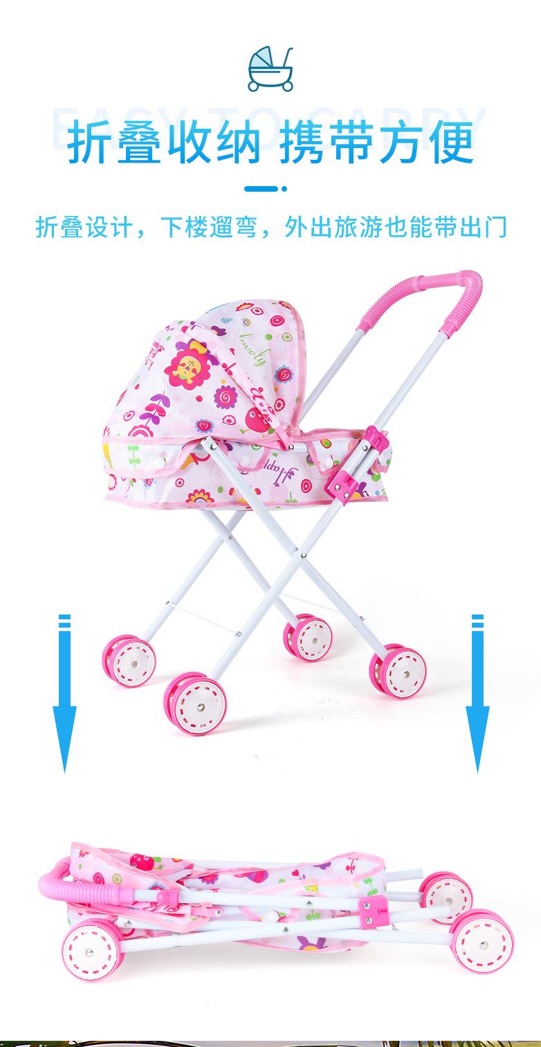 Venda Direta Atacado Carrinho de Bebê de Ferro com Boneca Artificial Menina Brinquedo Casa de Bonecas Andador de Bebê