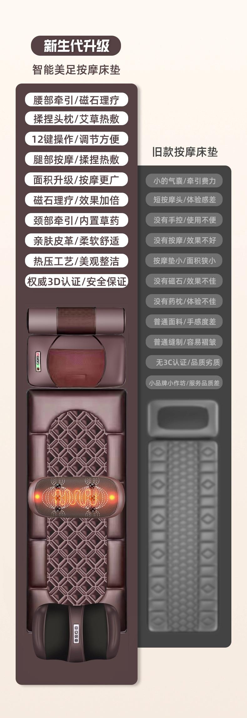 Colchão de Massagem Elétrico Corpo Inteiro Massageador Multifuncional Almofada de Massagem para Deitar Almofada Cintura Costas Massageador com Bolsa de Ar Quente