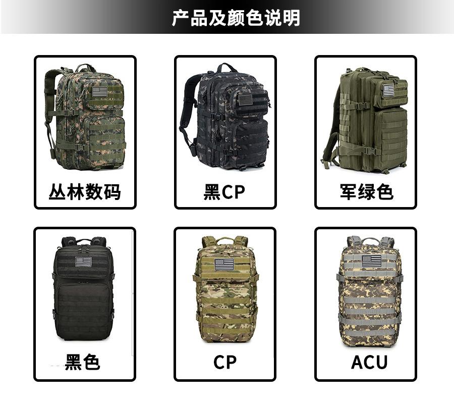 Mochila tática camuflada 3P de 45L, grande capacidade, para viagem, lazer, esportes ao ar livre, montanhismo e caminhadas, bolsa militar para leque