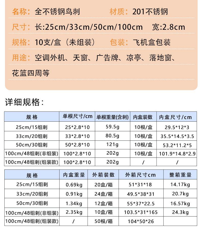 Fornecimento transfronteiriço de 201 materiais de aço inoxidável para proteção de cercas contra pássaros, espigões repelentes de pássaros, espigões anti-gatos, espigões para pássaros.