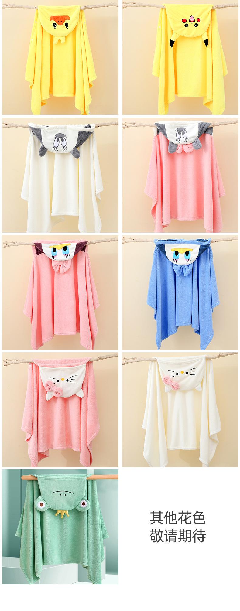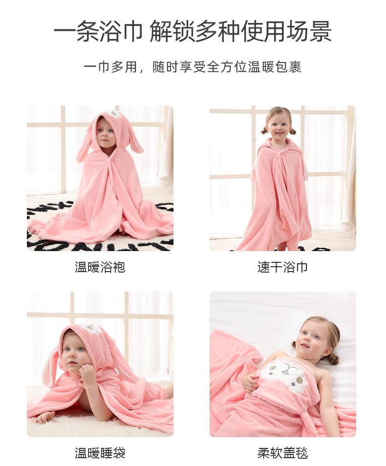 Toalha de banho infantil, capa de lã coral, roupão de banho com capuz de desenho animado para bebê, toalha absorvente e sem pelos, capa de uso