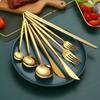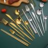 Faca e garfo de aço inoxidável transfronteiriços, colher, pauzinhos, internet, utensílios de mesa portugueses populares, colher dourada, faca e garfo de bife ocidental, colher de sobremesa