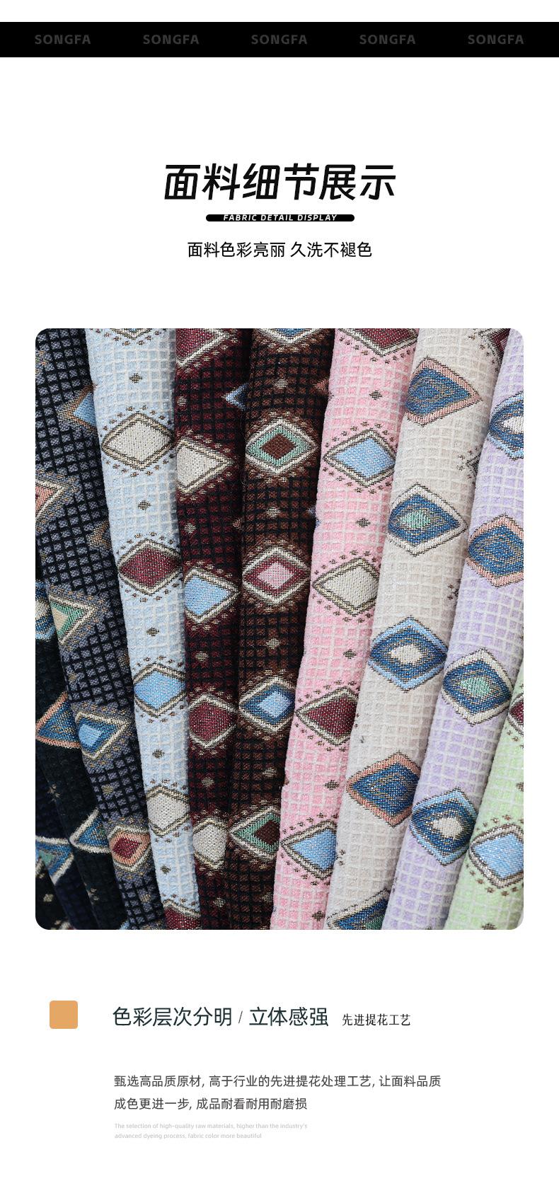 Outono e inverno novo tecido jacquard de cashmere padrão geométrico de diamantes pequenos sacos têxteis para casa frescos tecido de roupas