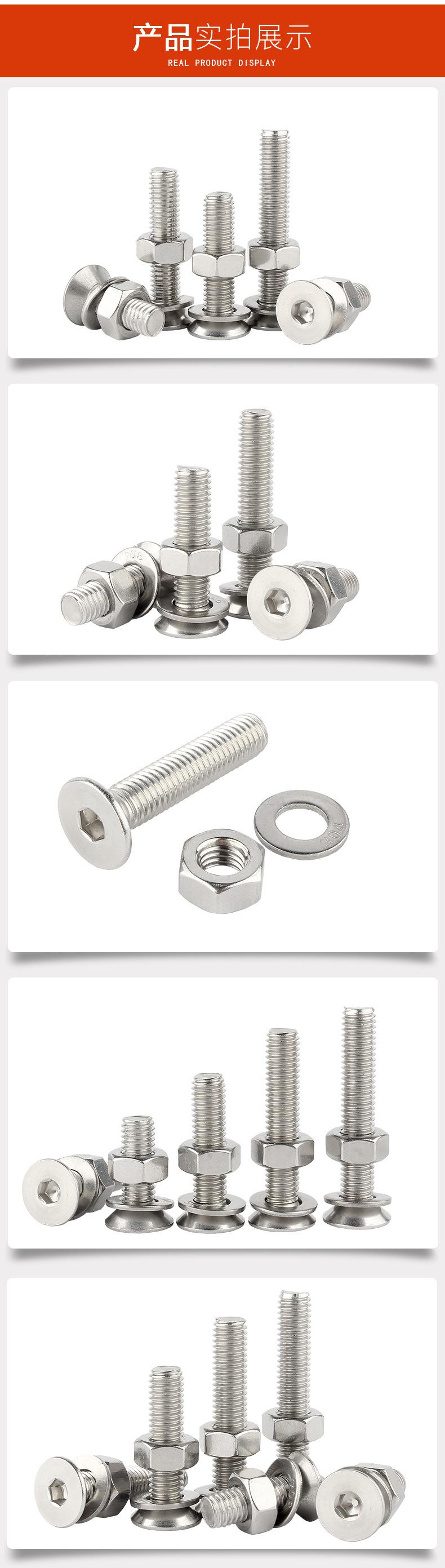Conjunto completo de porcas sextavadas escareadas de aço inoxidável 304, combinação de parafusos de cabeça chata M2M3M4M5M6M8