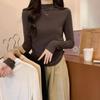 Novo Top de Veludo de Cor Sólida de Gola Alta Média de Manga Comprida para Mulheres, Visual Versátil e Emagrecedor Camiseta Casual Interna para Usar por Baixo