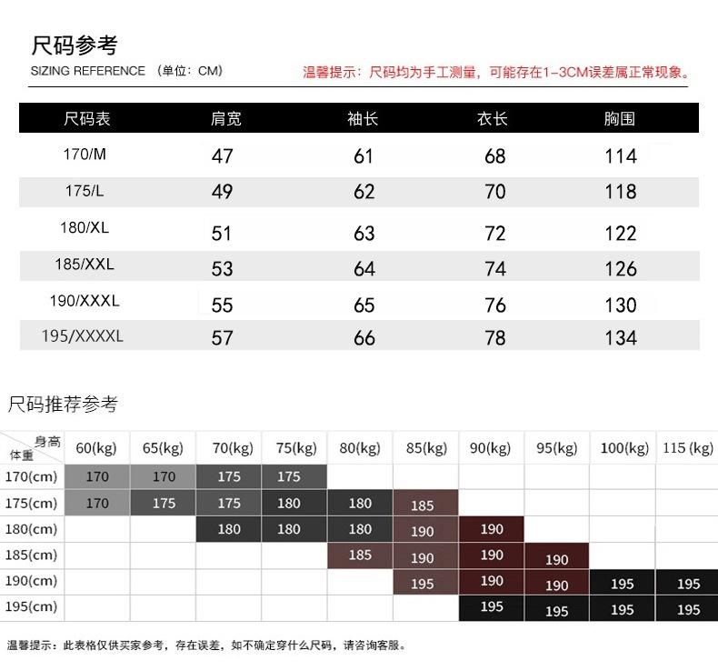 170/48, 175/50, 180/52, 185/54, 190/56, 195/58, 200/60