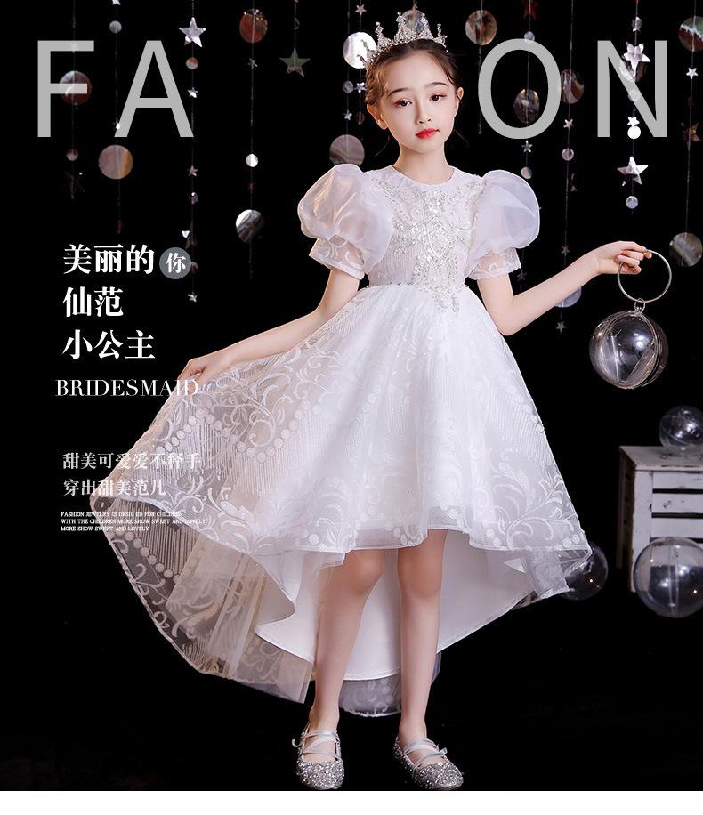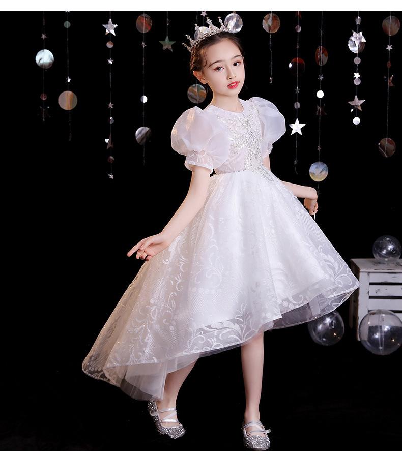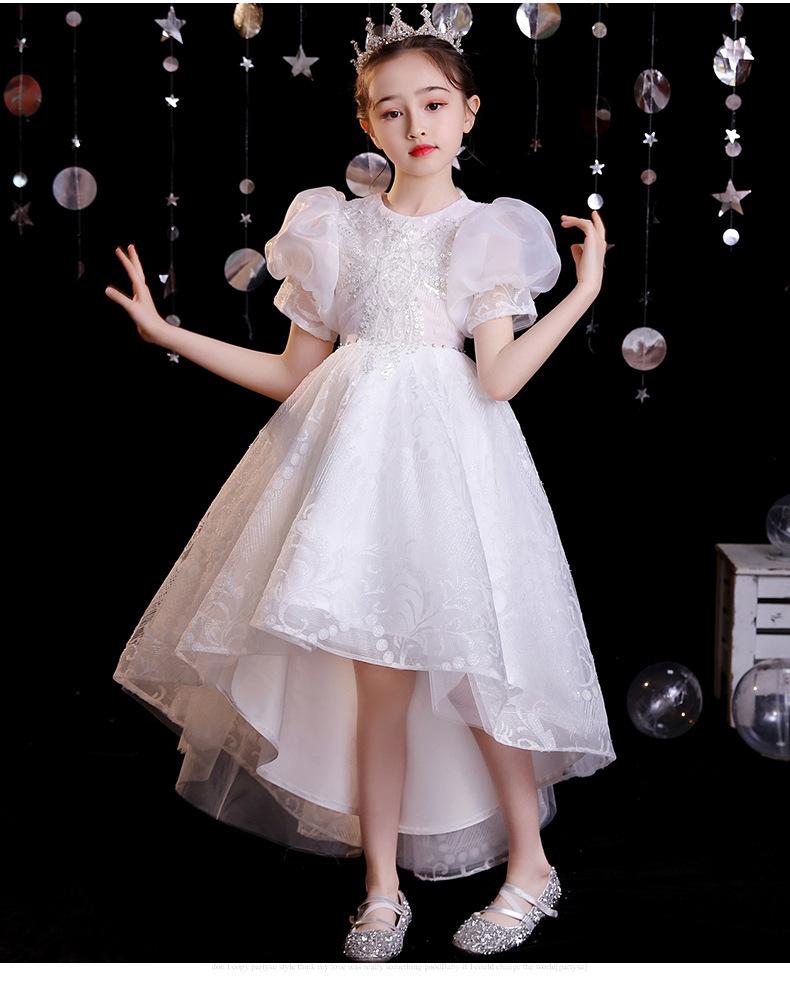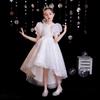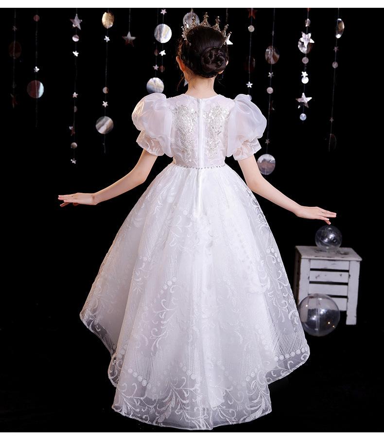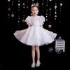 Vestido de gaze branca para meninas, vestido de princesa infantil de lã fofa, vestido de aniversário para meninas, fantasia de piano para meninas anfitriãs